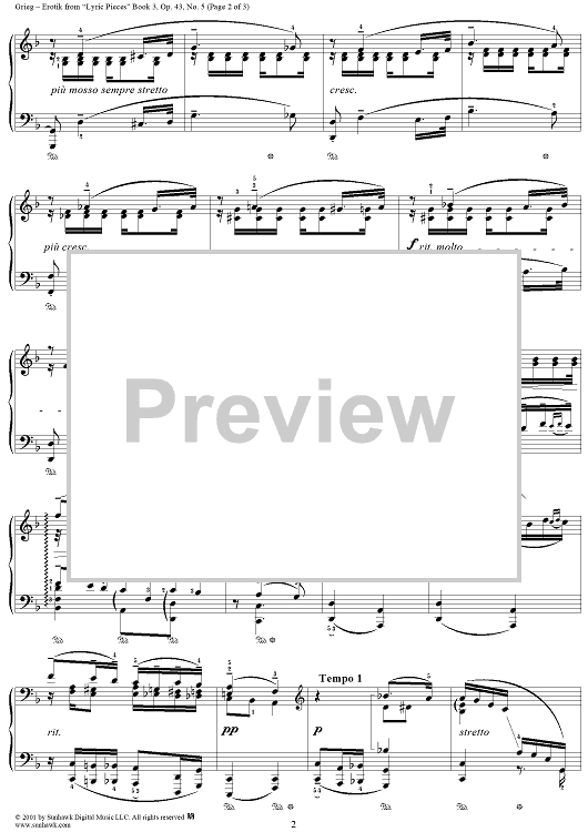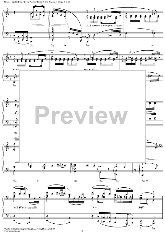 Digital Sheet Music for Lyric Pieces Book 3, op. 43, no. 5: Erotik (Love Poem) by Edvard Grieg scored for Piano Solo; id:267725