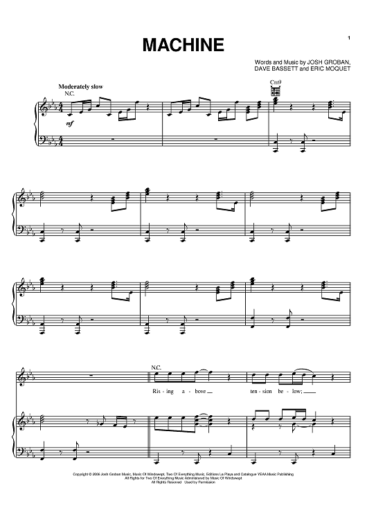 Digital Sheet Music for Machine by Josh Groban, Dave Bassett, Eric Mouquet scored for Piano/Vocal/Chords; id:395522