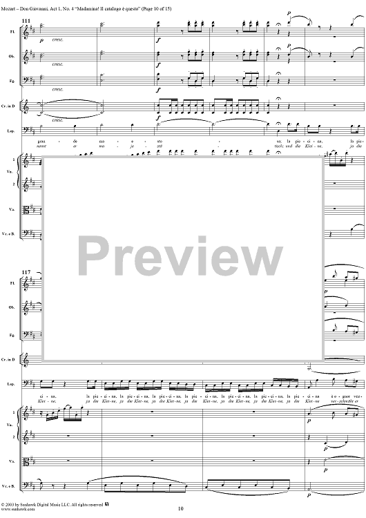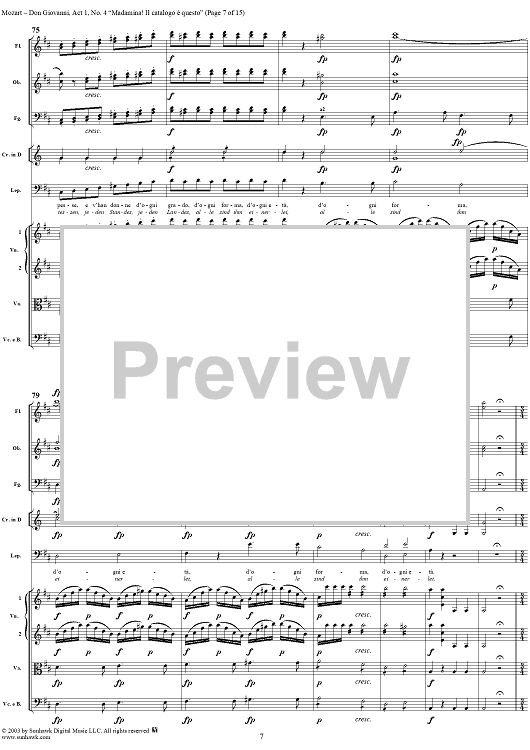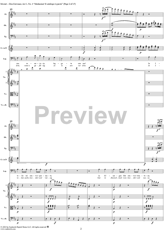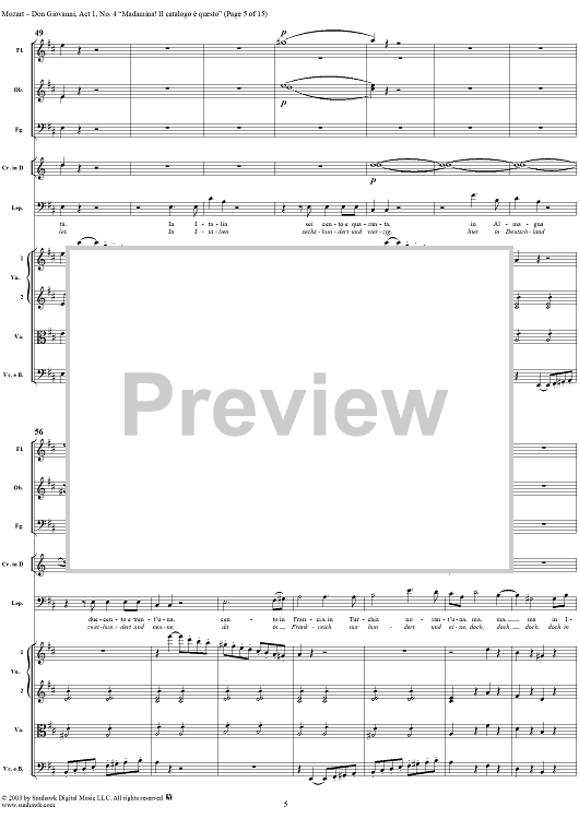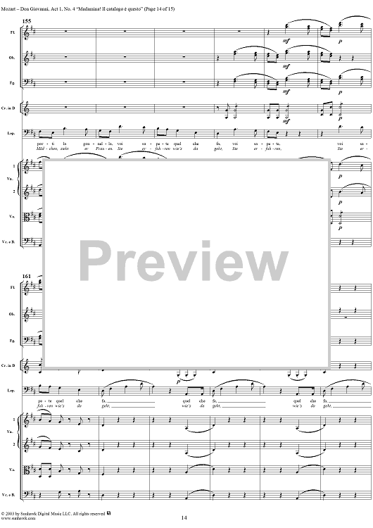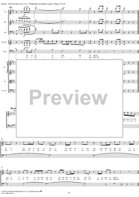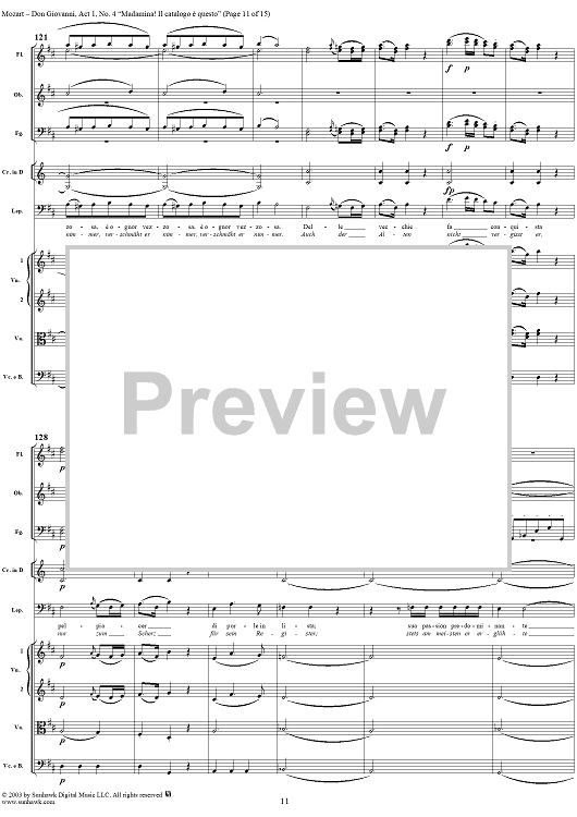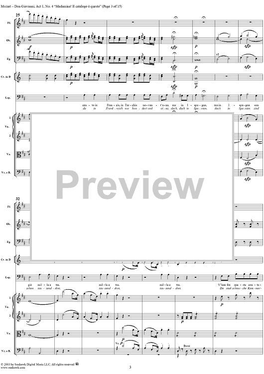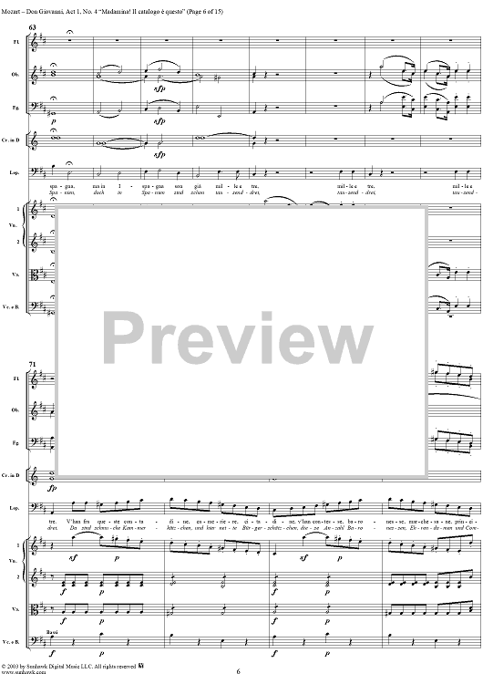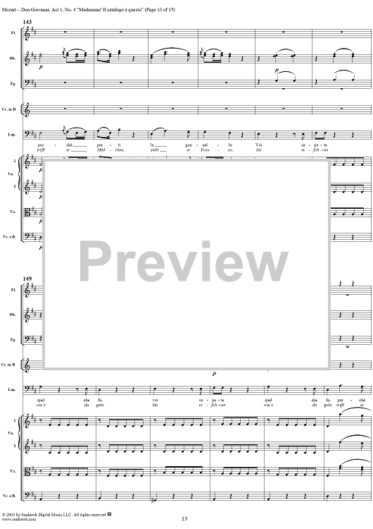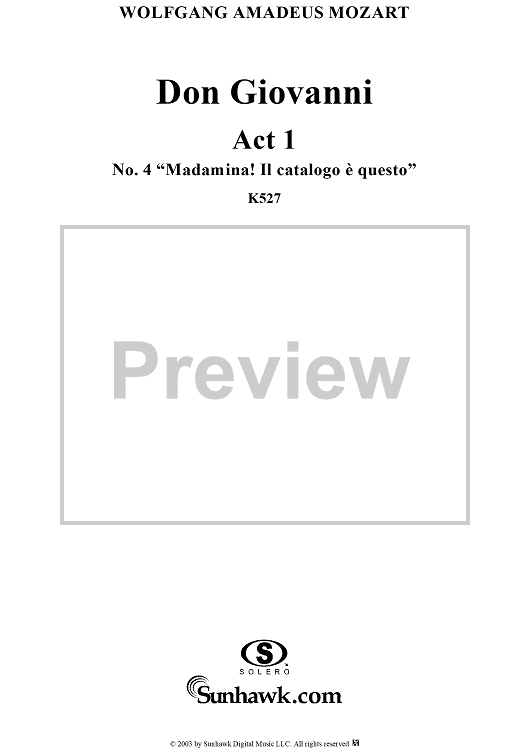 Digital Sheet Music for "Madamina! Il catalogo è questo", No. 4 from "Don Giovanni", Act 1, K527 - Full Score by Wolfgang Amadeus Mozart scored for Voice and Orchestra; id:291901