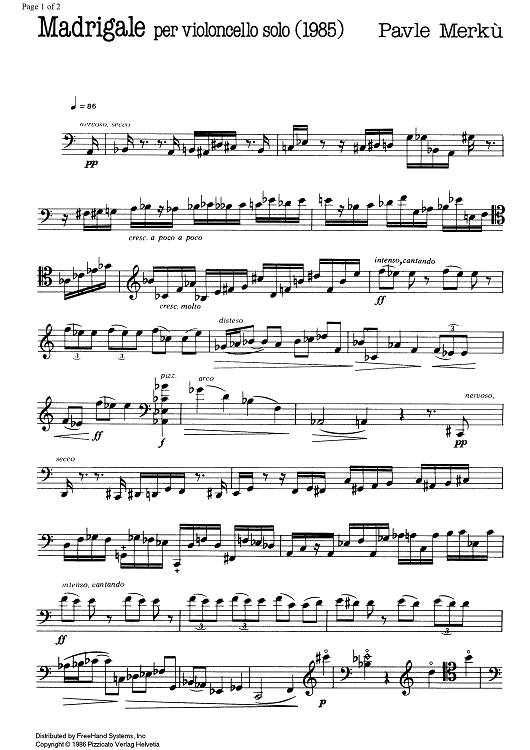 Digital Sheet Music for Madrigale by Pavle Merkù scored for Cello; id:334246