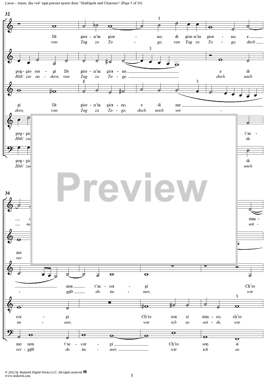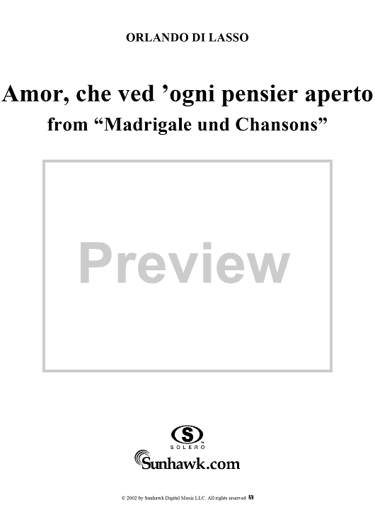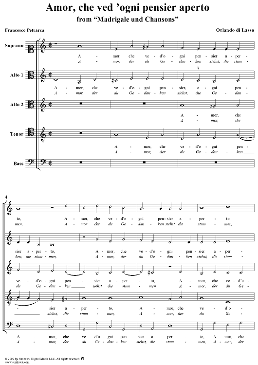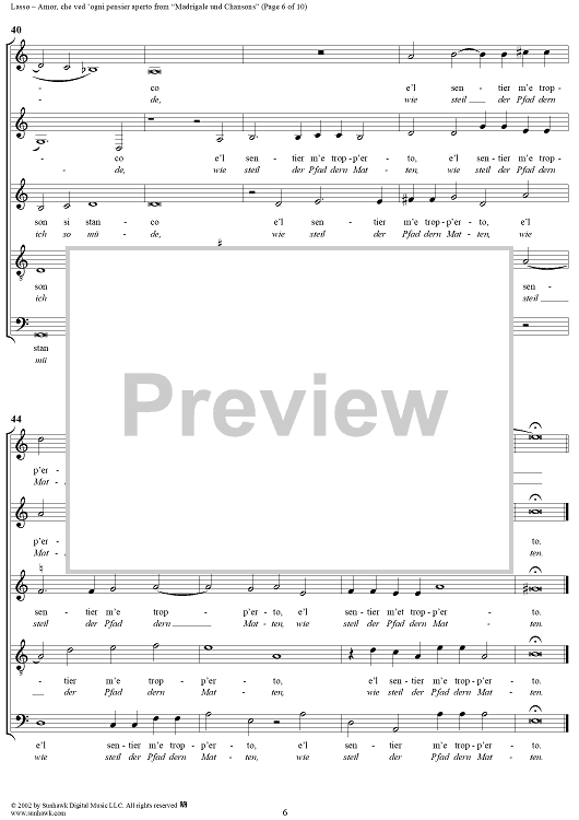 Digital Sheet Music for Madrigale und Chansons, vol.13, 6 by Orlando de Lassus scored for Mixed Chorus; id:252386