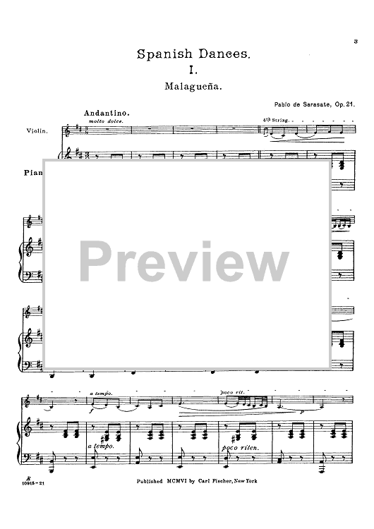 "Malagueña - from Spanish Dances Op. 21" Sheet Music by Pablo de Sarasate