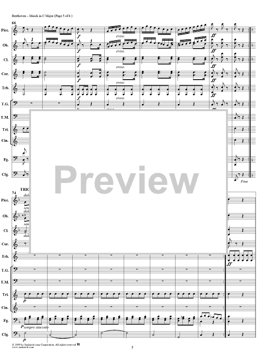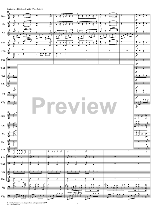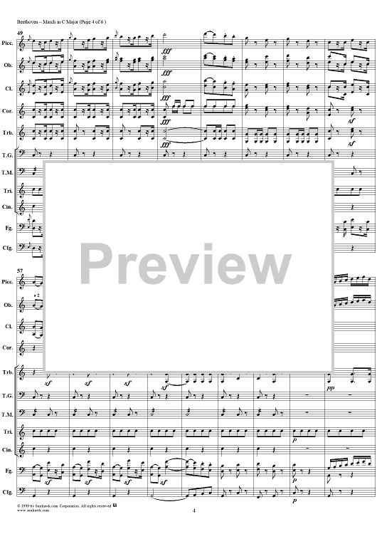 Digital Sheet Music for March in C major - Full Score by Ludwig van Beethoven scored for Concert Band; id:119279