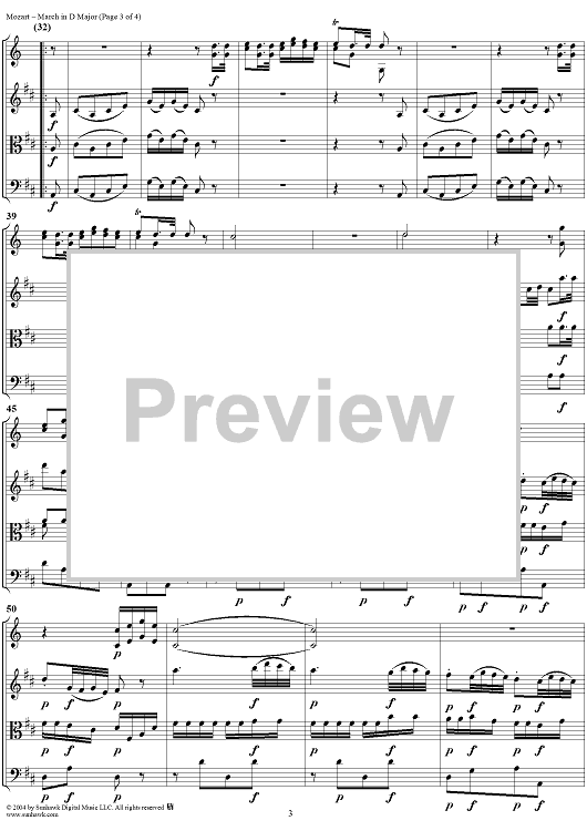 "March in D Major, K167AB (K290) - Full Score" Sheet Music by Wolfgang Amadeus Mozart