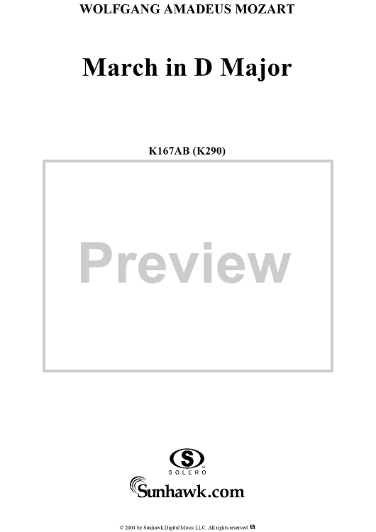 Digital Sheet Music for March in D Major, K167AB (K290) - Full Score by Wolfgang Amadeus Mozart scored for Orchestra; id:292296