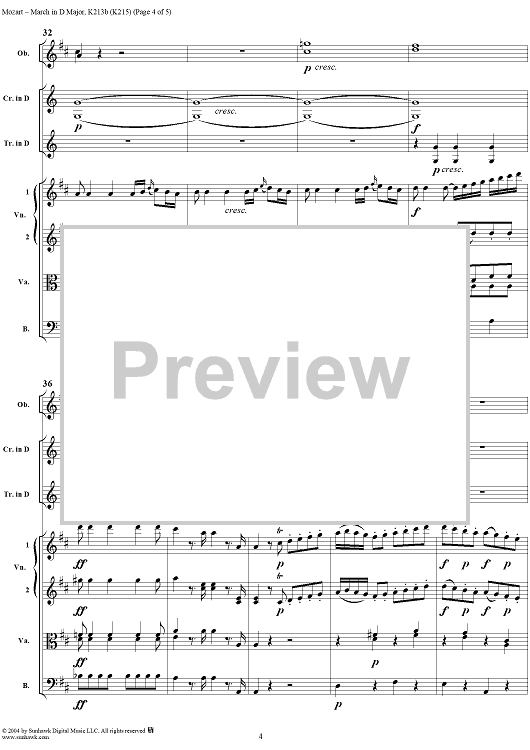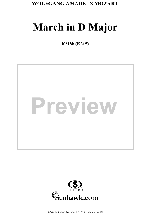 Digital Sheet Music for March in D Major, K213b (K215) - Full Score by Wolfgang Amadeus Mozart scored for Orchestra; id:292292