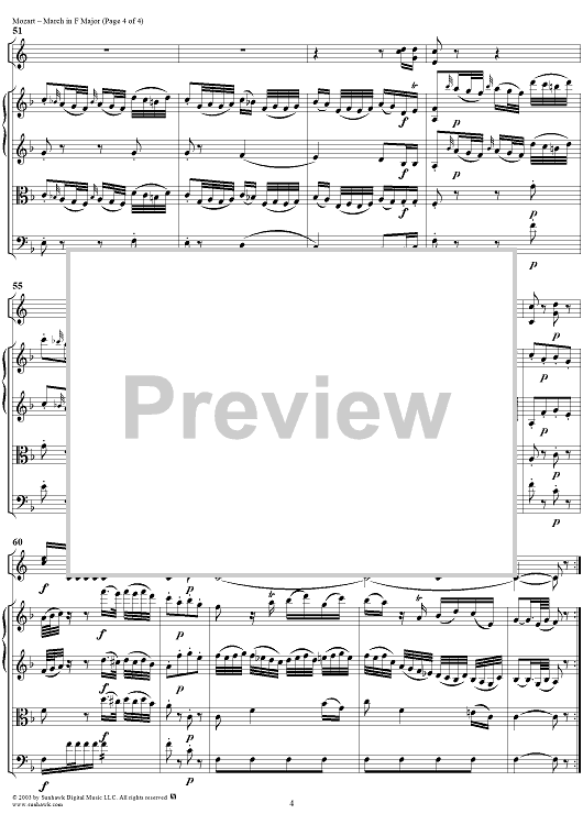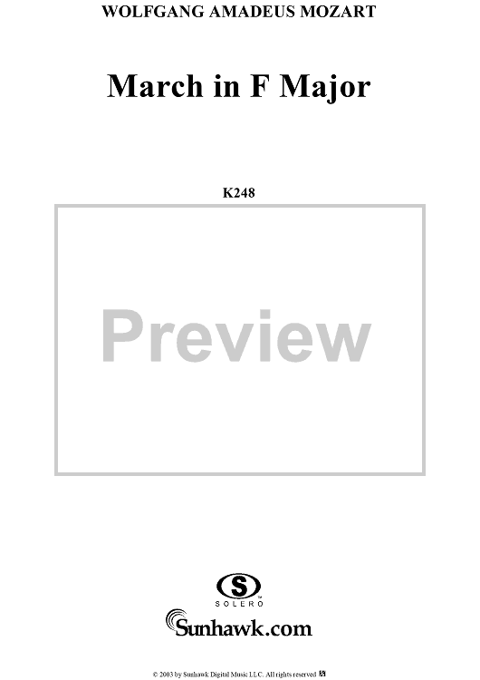"March in F Major, K248 - Full Score" Sheet Music by Wolfgang Amadeus Mozart