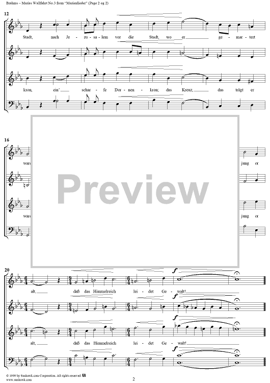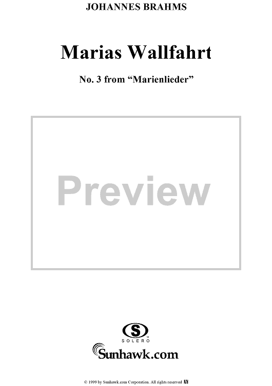 Digital Sheet Music for Marias Wallfahrt - No. 3 from "Marienlieder", Op. 22 by , Johannes Brahms scored for Four-part Mixed Chorus; id:274313