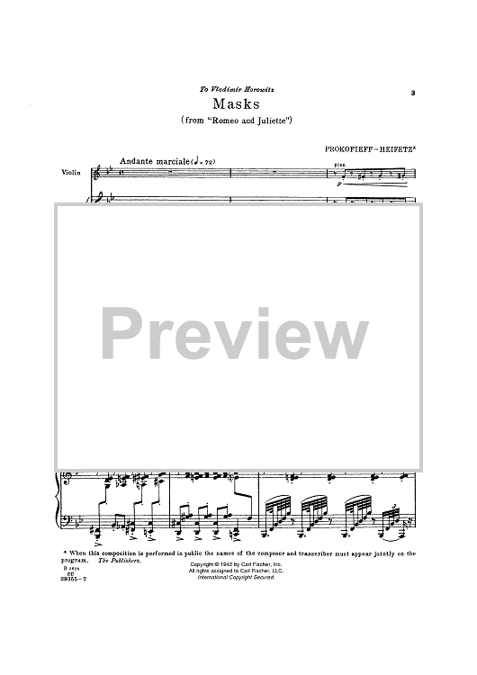 "Masks - from the Ballet Romeo and Juliette" Sheet Music by Sergei Prokofieff