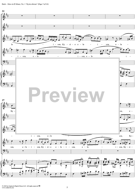 Digital Sheet Music for Mass in B Minor, BWV232, No. 1: "Kyrie eleison" by Johann Sebastian Bach scored for Five-part Mixed Chorus; id:304738