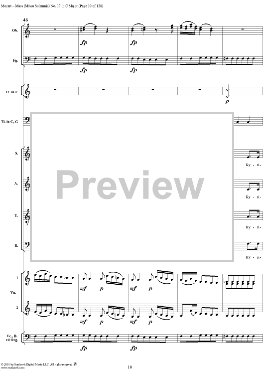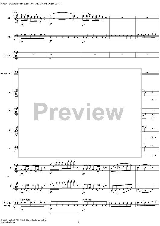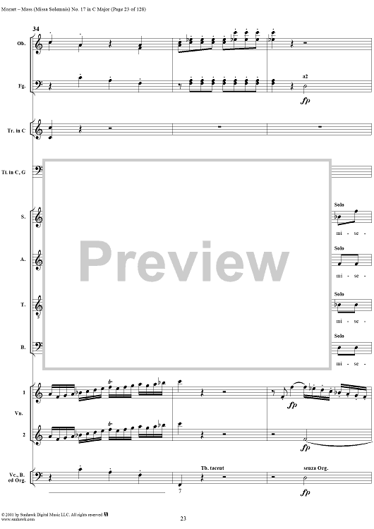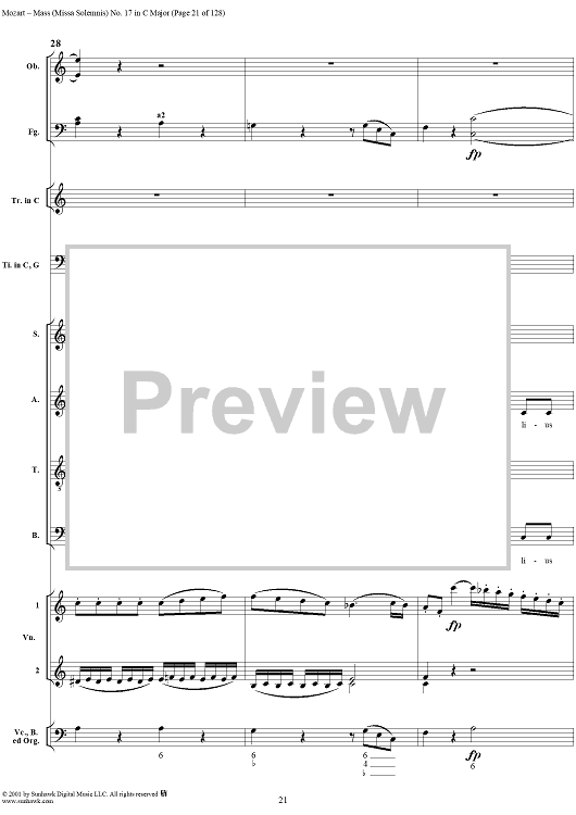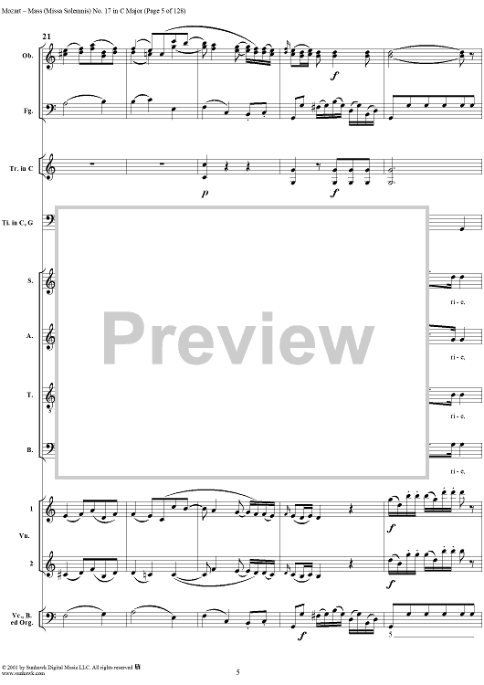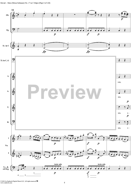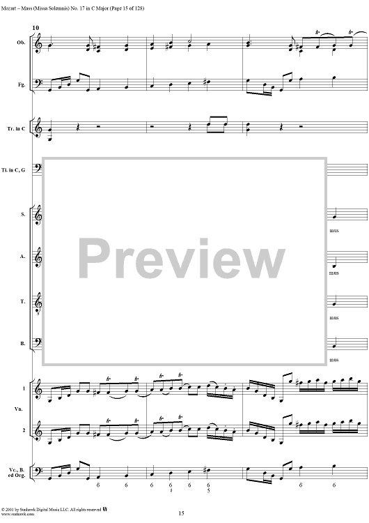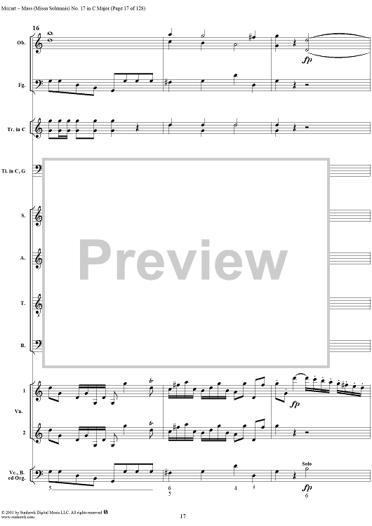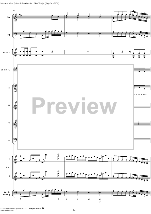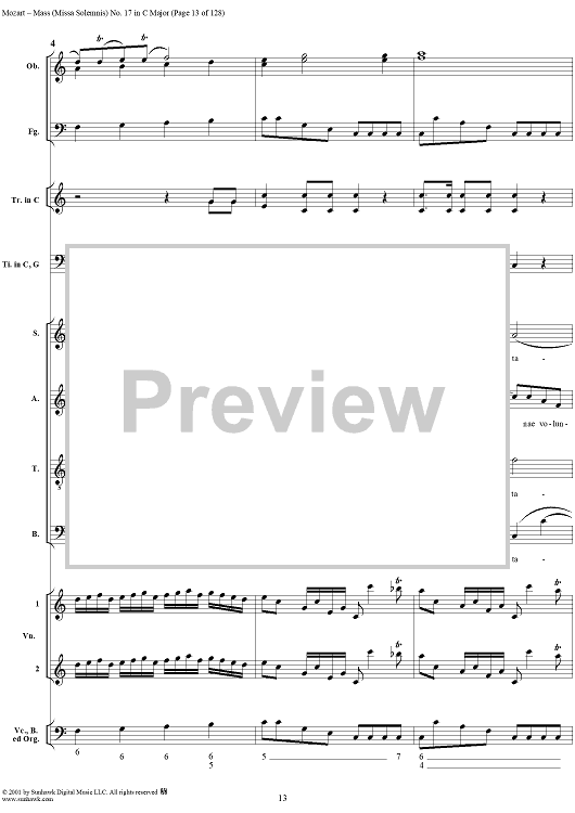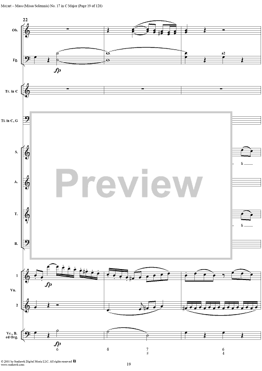 Digital Sheet Music for Mass (Missa Solemnis) No. 17 in C Major, K337 by Wolfgang Amadeus Mozart scored for Chorus and Orchestra; id:277223