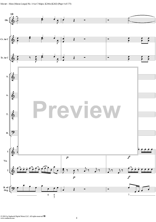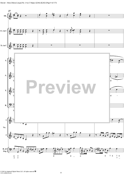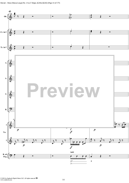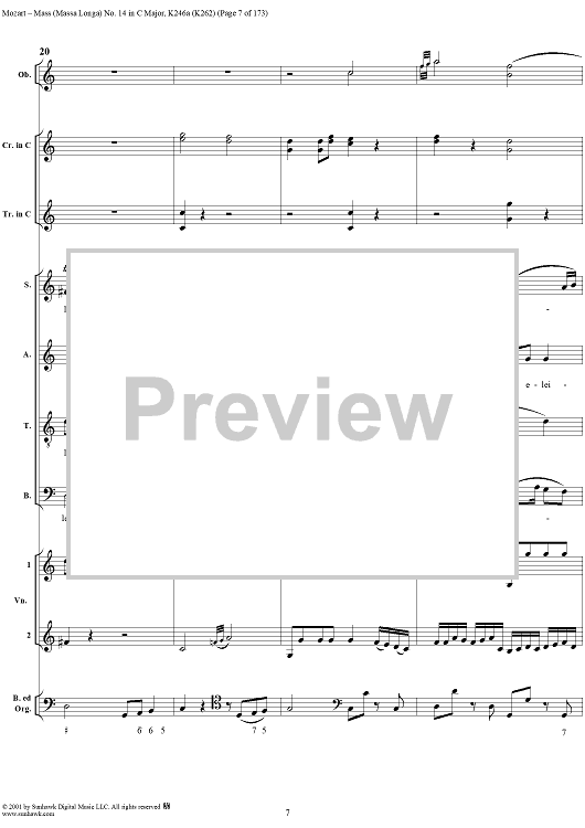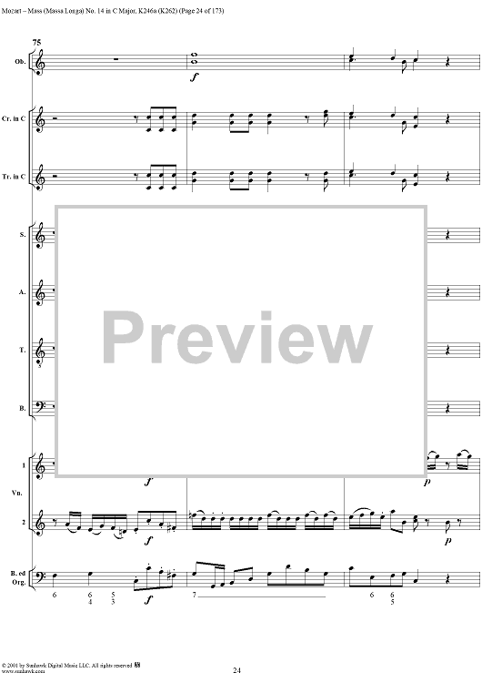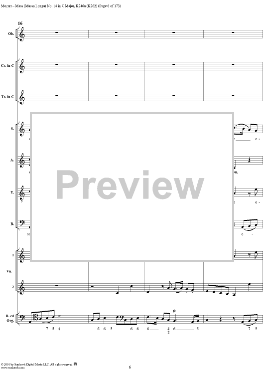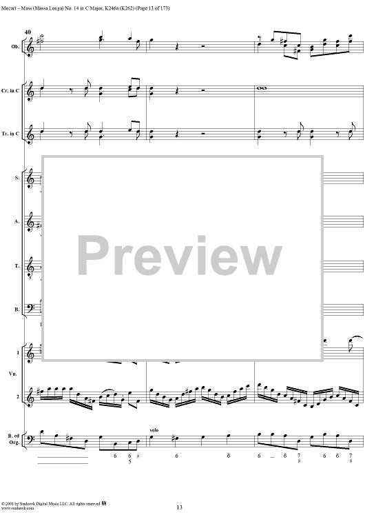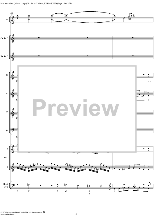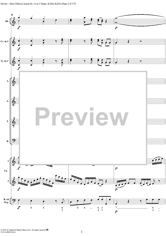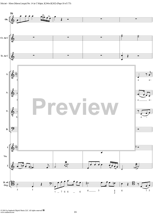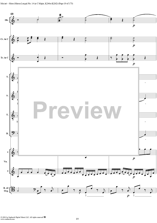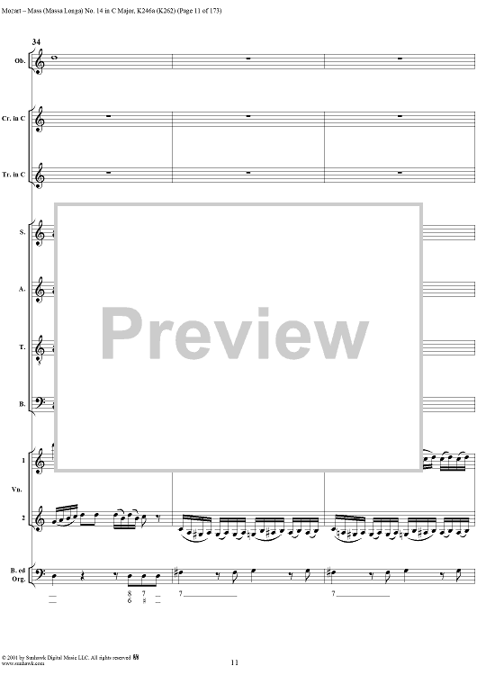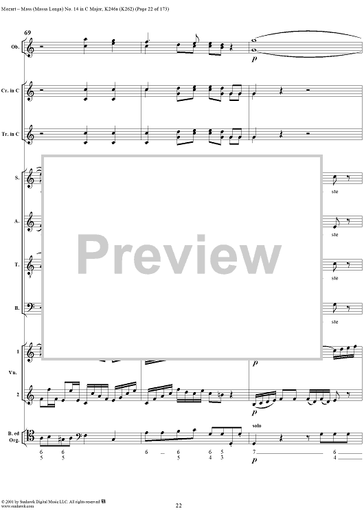 Digital Sheet Music for Mass Missa(Longa) No. 14 in C Major, K246a (K262) by Wolfgang Amadeus Mozart scored for Four-part Mixed Chorus/Orchestra; id:249966