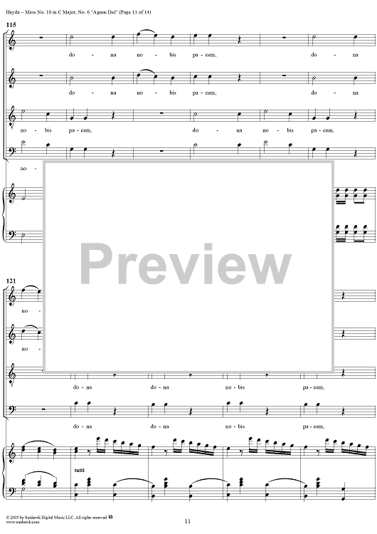 "Mass No. 10 (Kriegsmesse) in C Major, "Paukenmesse": Agnus Dei" Sheet Music by Franz Joseph Haydn
