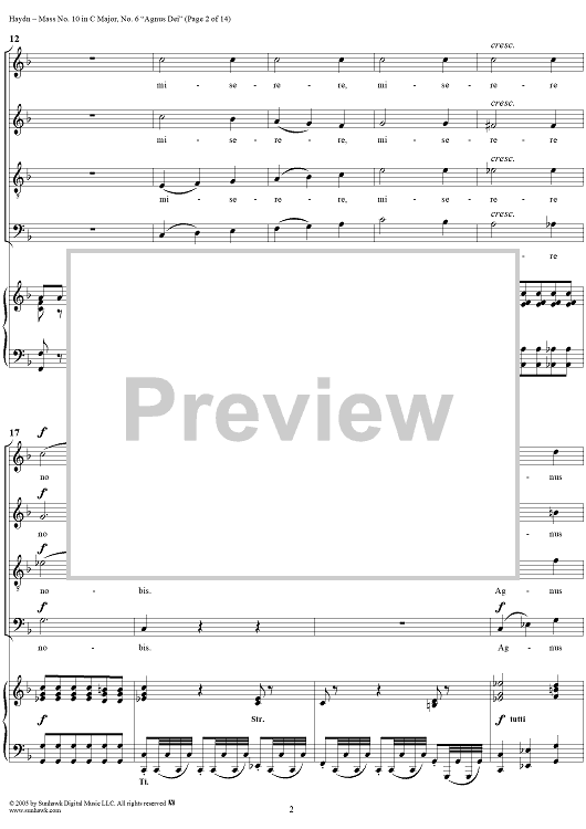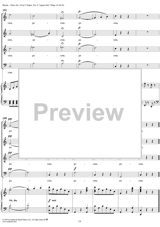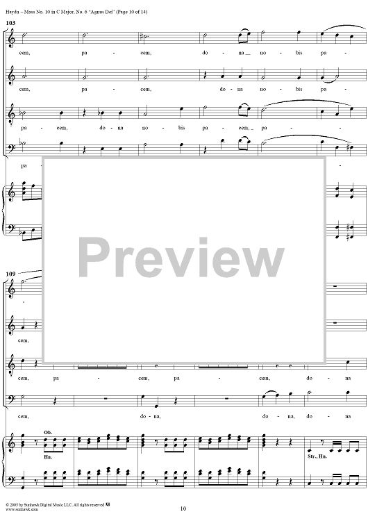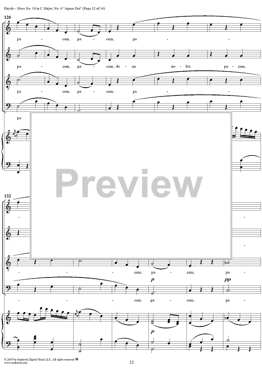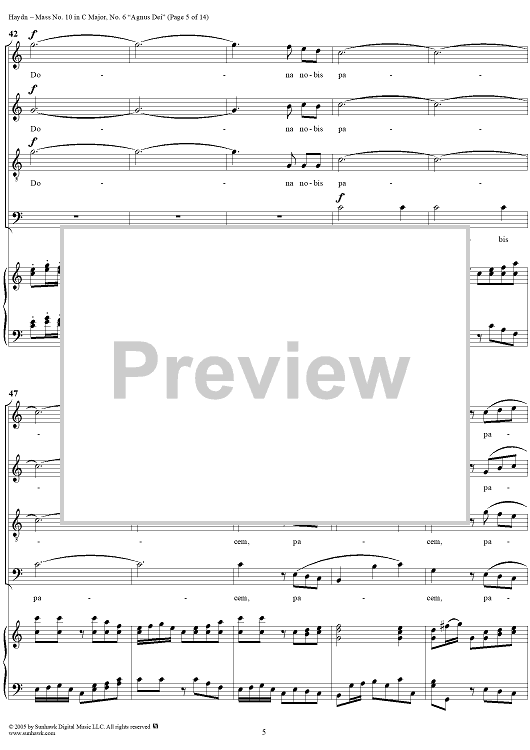 Digital Sheet Music for Mass No. 10 (Kriegsmesse) in C Major, "Paukenmesse": Agnus Dei by Franz Joseph Haydn scored for Four-part Mixed Chorus/Piano; id:306702
