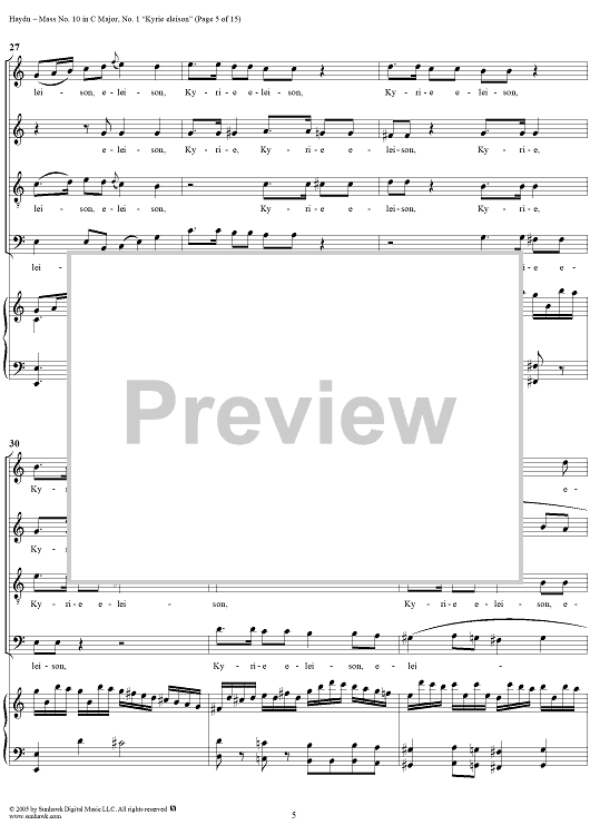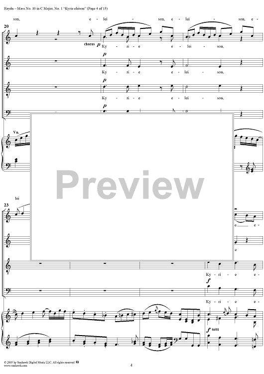 Digital Sheet Music for Mass No. 10 (Kriegsmesse) in C Major, "Paukenmesse": Kyrie eleison by Franz Joseph Haydn scored for Four-part Mixed Chorus/Piano; id:306696