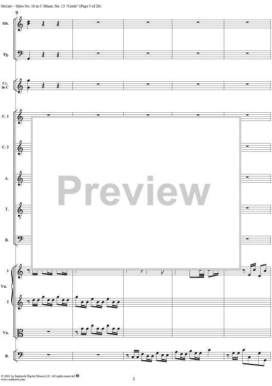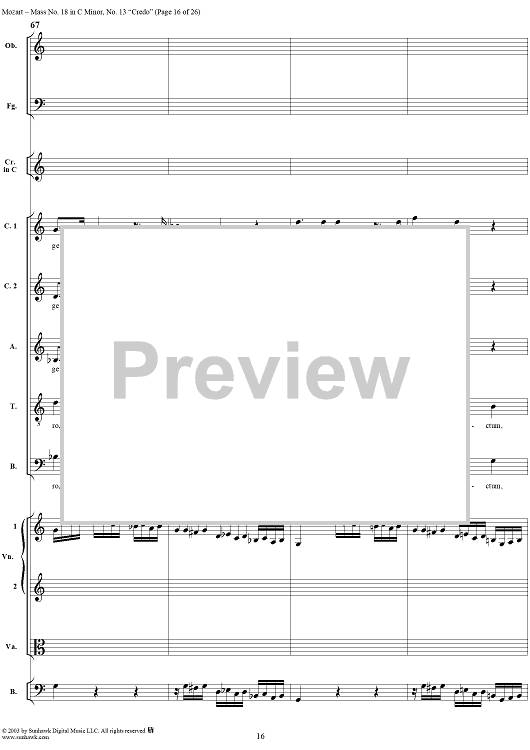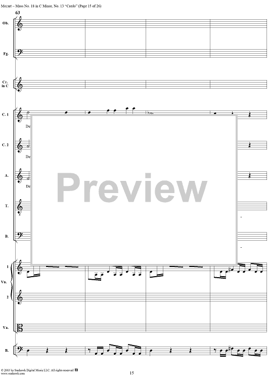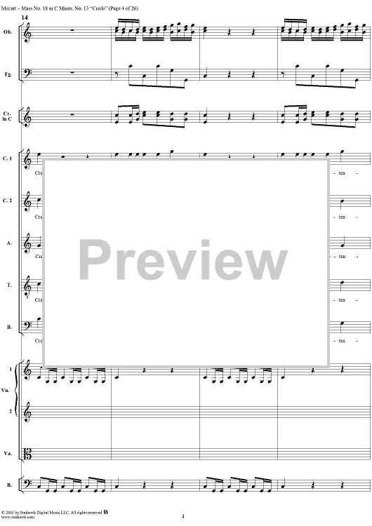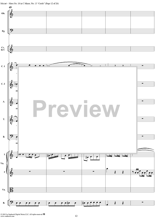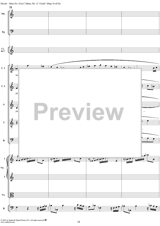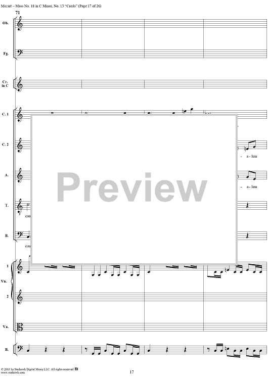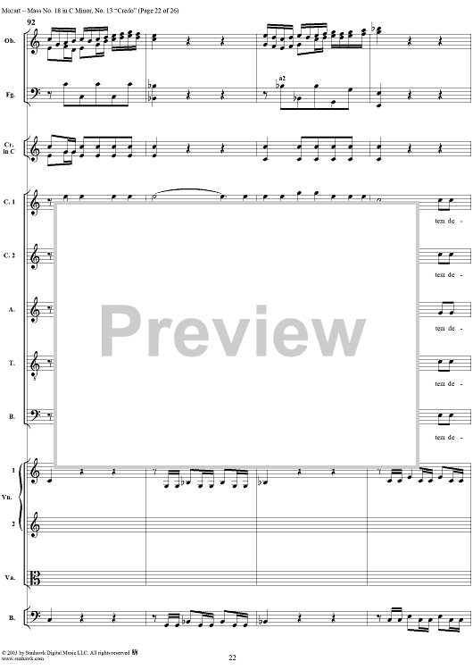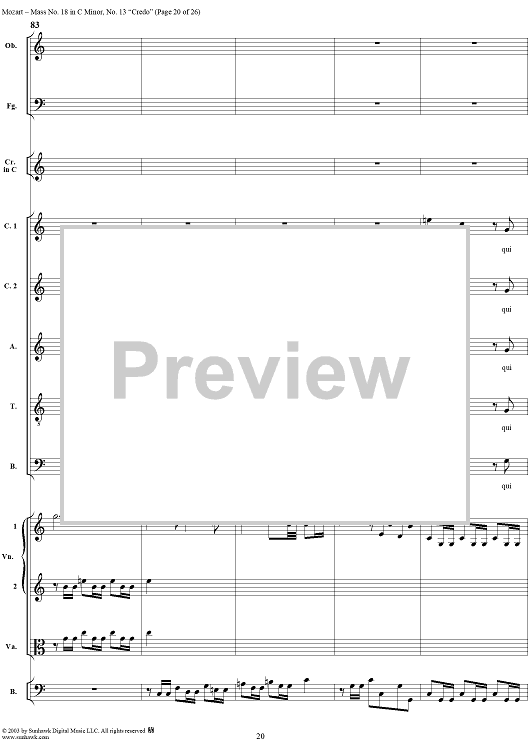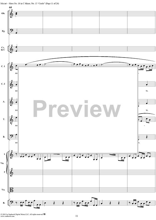 Digital Sheet Music for Mass No. 18 in C Minor, No. 13: Credo - Full Score by Wolfgang Amadeus Mozart scored for Chorus and Orchestra; id:292252