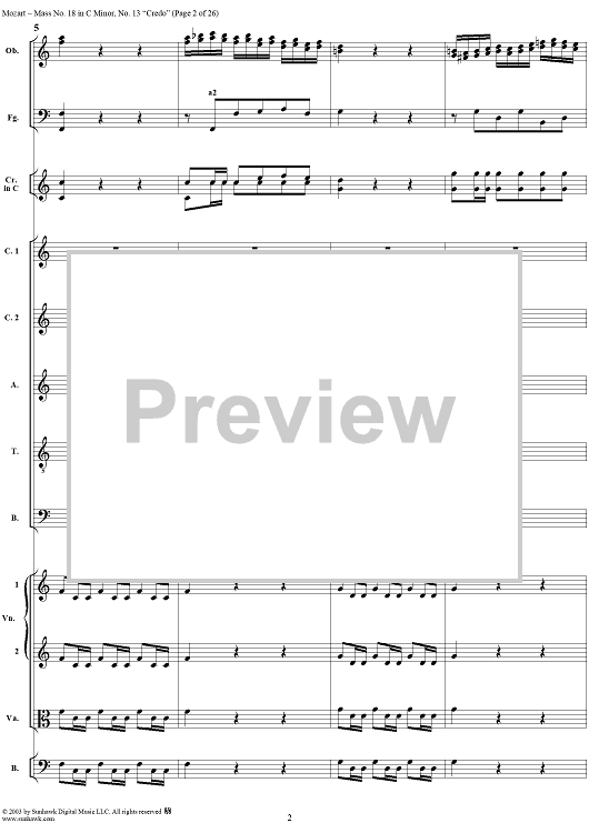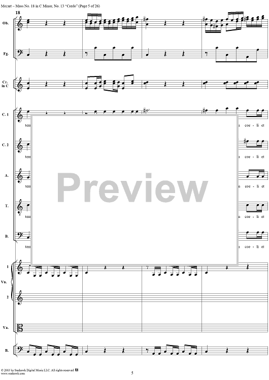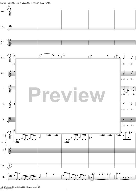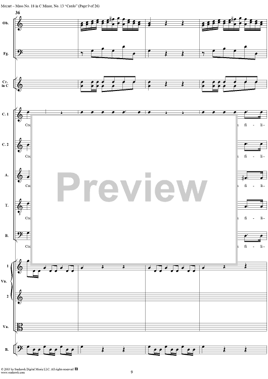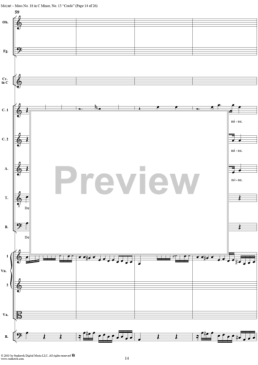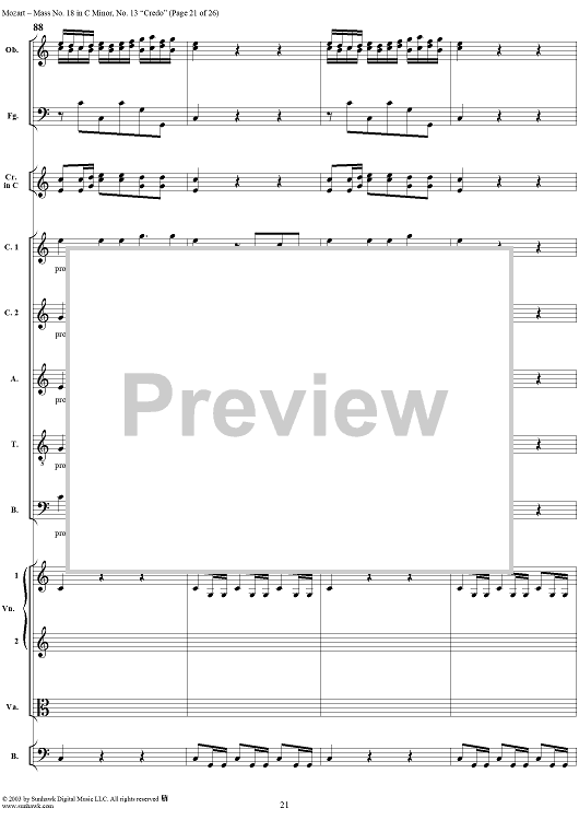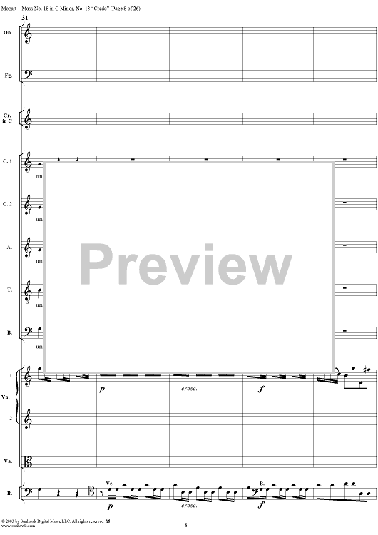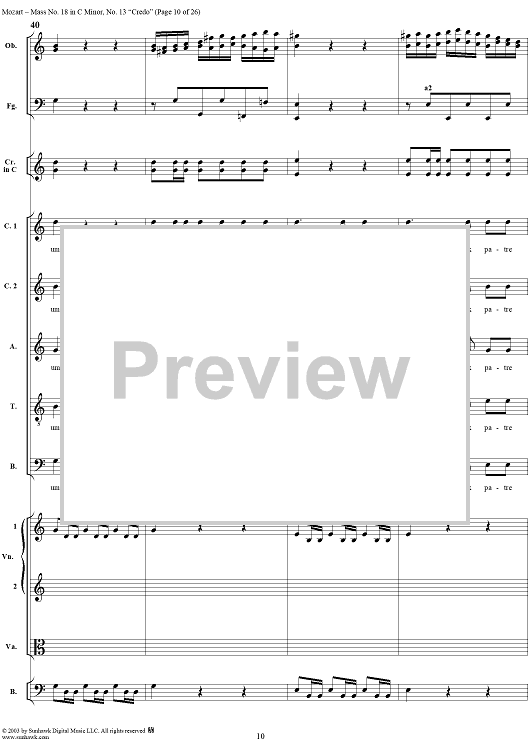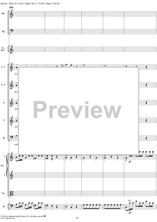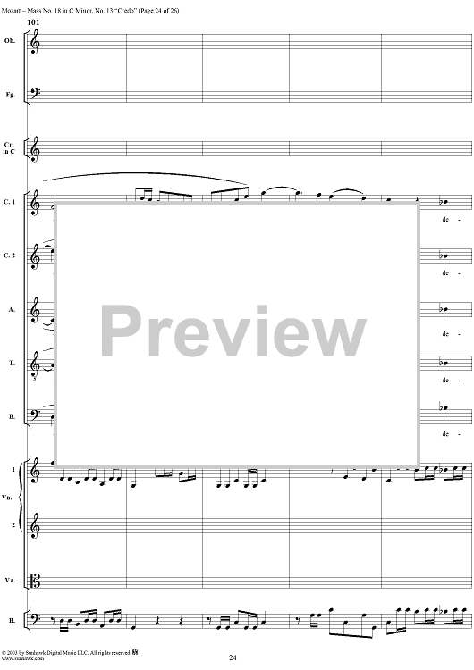 Digital Sheet Music for Mass No. 18 in C Minor, No. 13: Credo - Full Score by Wolfgang Amadeus Mozart scored for Chorus and Orchestra; id:292252