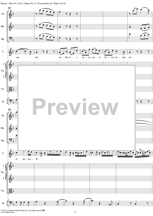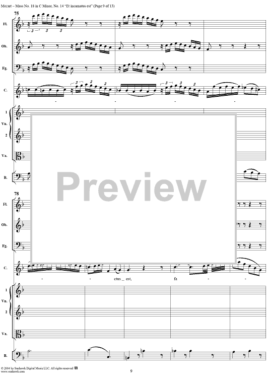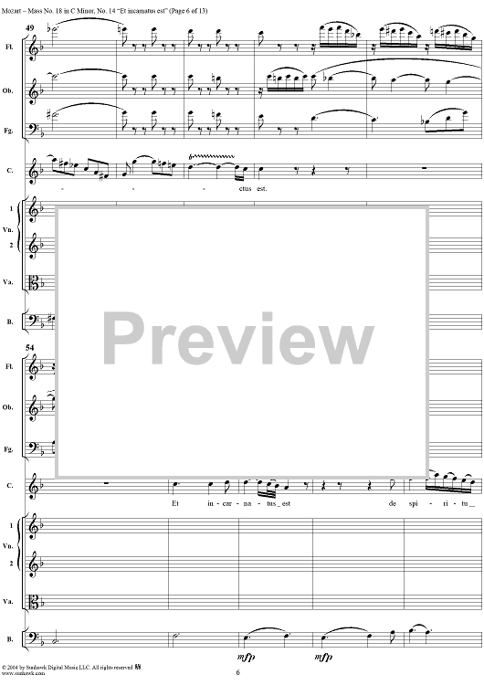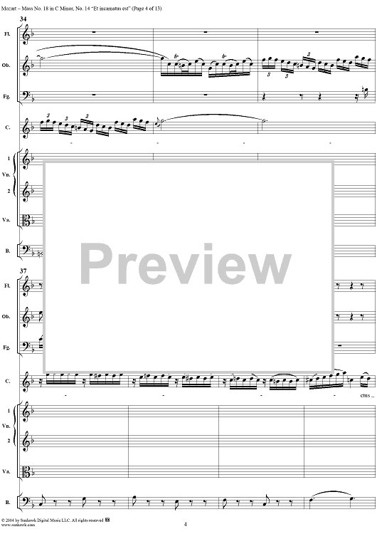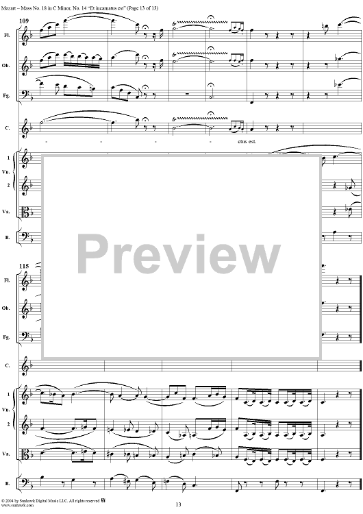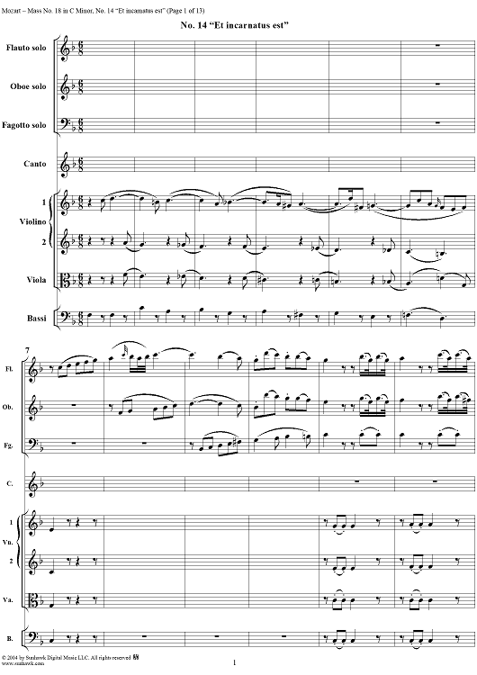 Digital Sheet Music for Mass No. 18 in C Minor, No. 14: Et incarnatus est - Full Score by Wolfgang Amadeus Mozart scored for Chorus and Orchestra; id:292253