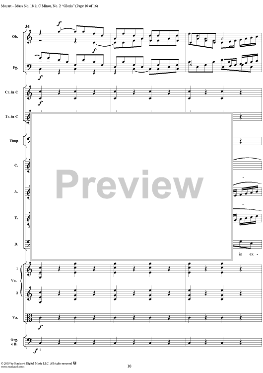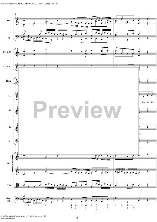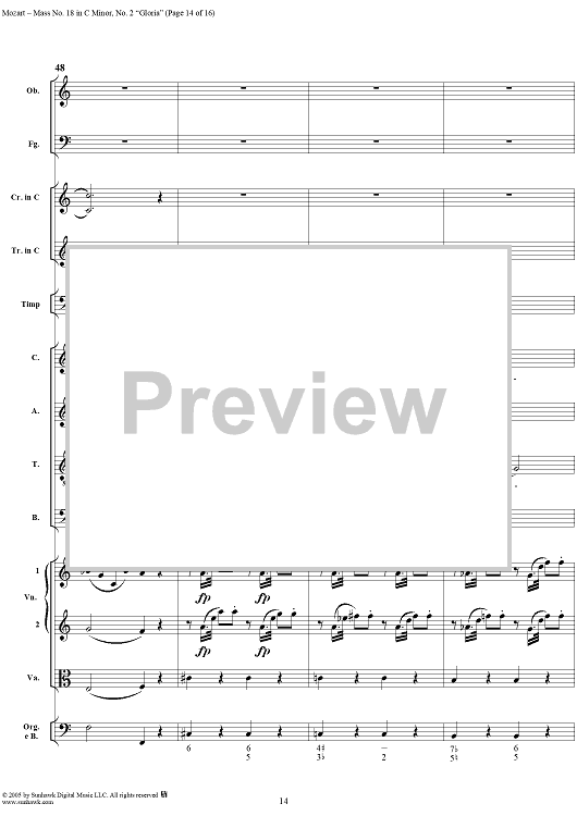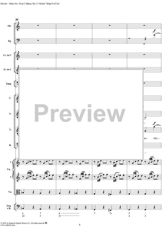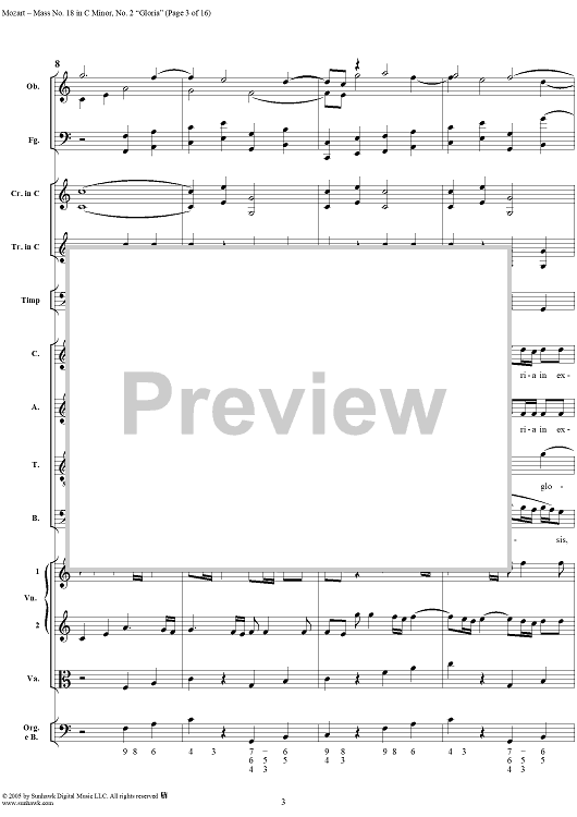 Digital Sheet Music for Mass No. 18 in C Minor, No. 2: Gloria - Full Score by Wolfgang Amadeus Mozart scored for Chorus and Orchestra; id:292239
