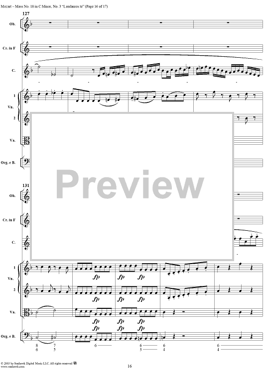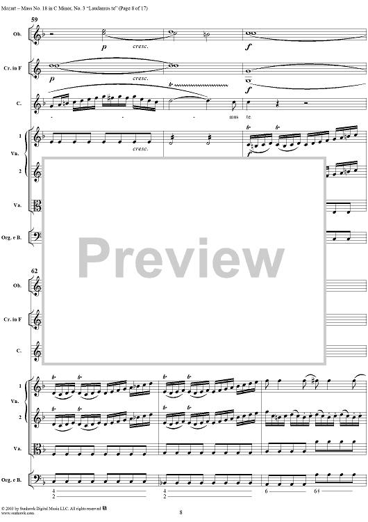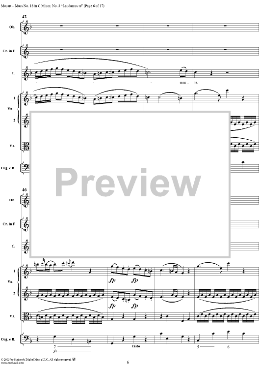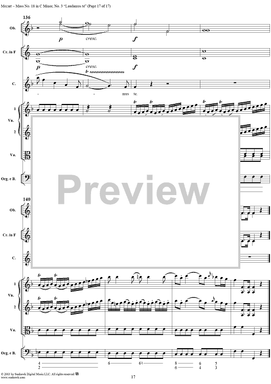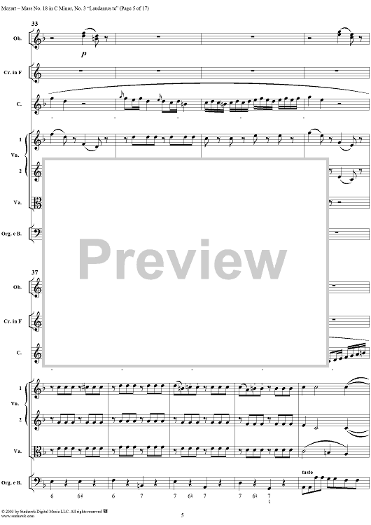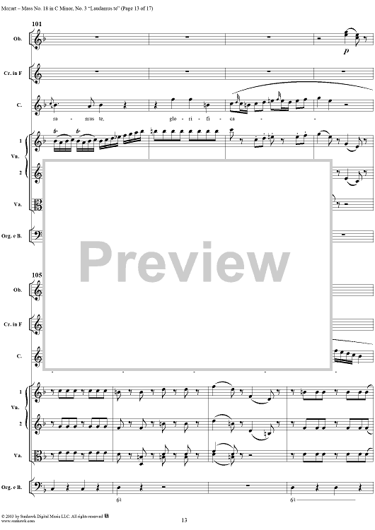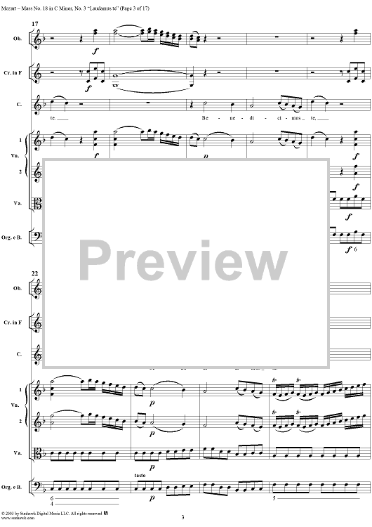 Digital Sheet Music for Mass No. 18 in C Minor, No. 3: Laudamus te - Full Score by Wolfgang Amadeus Mozart scored for Chorus and Orchestra; id:292240