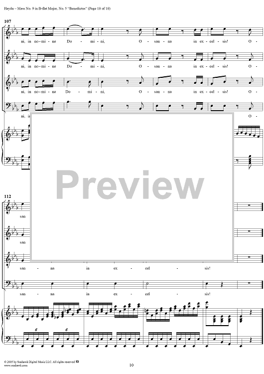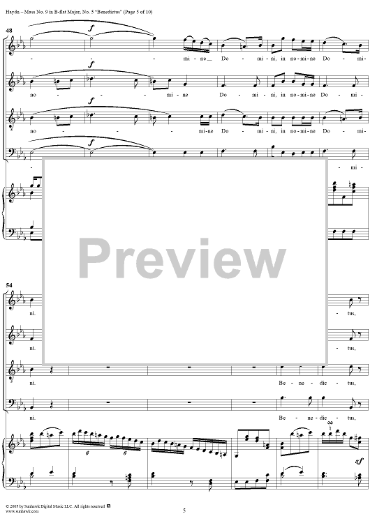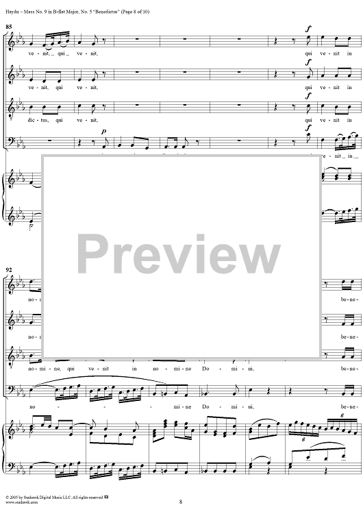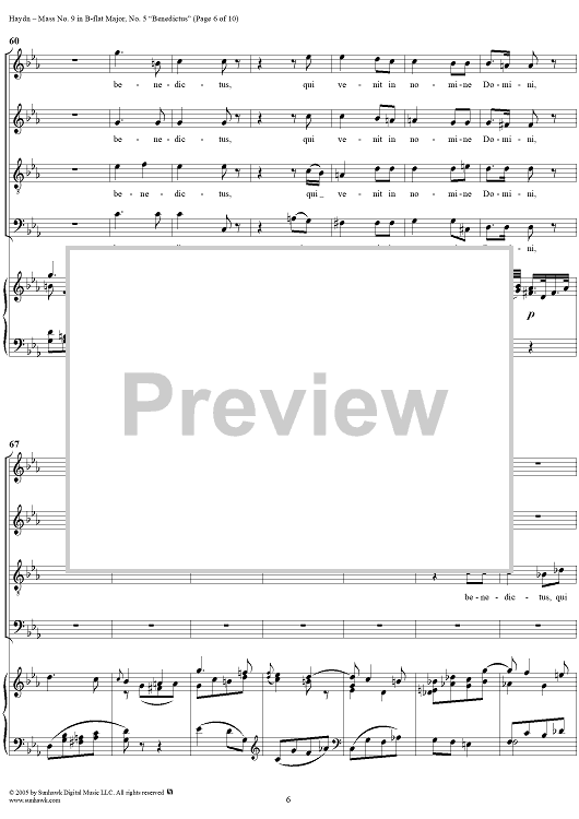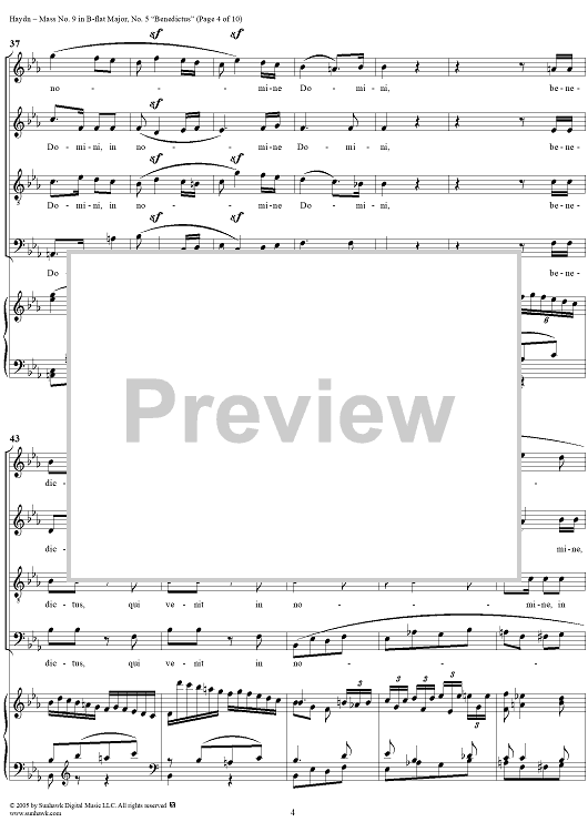 Digital Sheet Music for Mass No. 9 (Sancti Bernardi) in B-flat Major, "Heiligmesse": No. 5. Benedictus by Franz Joseph Haydn scored for Four-part Mixed Chorus/Piano; id:306861