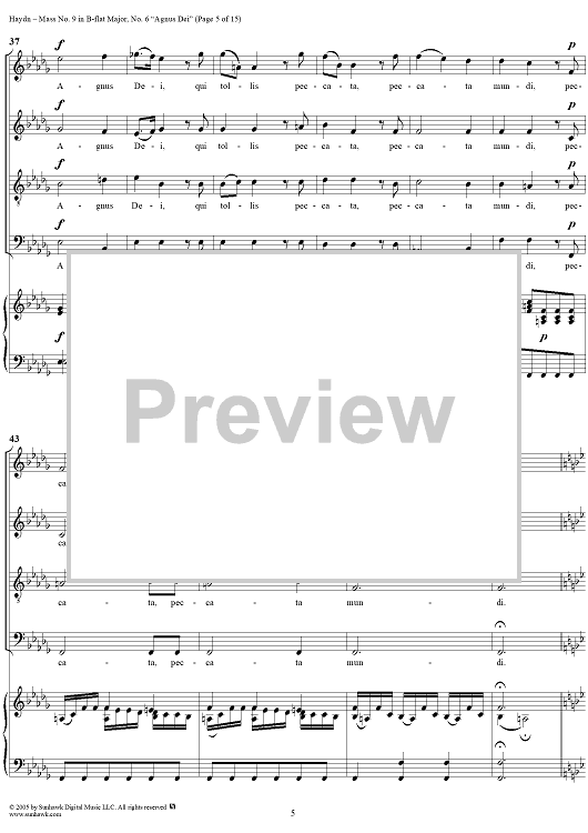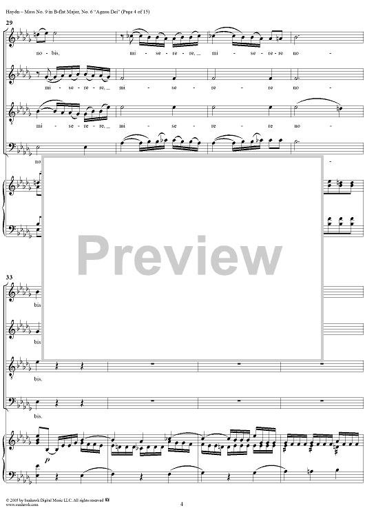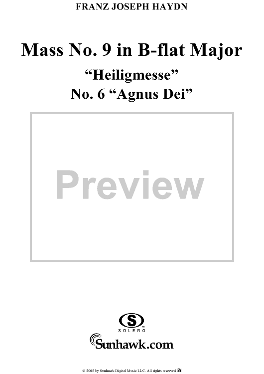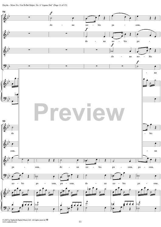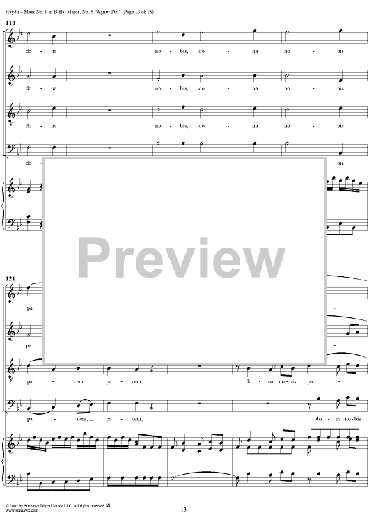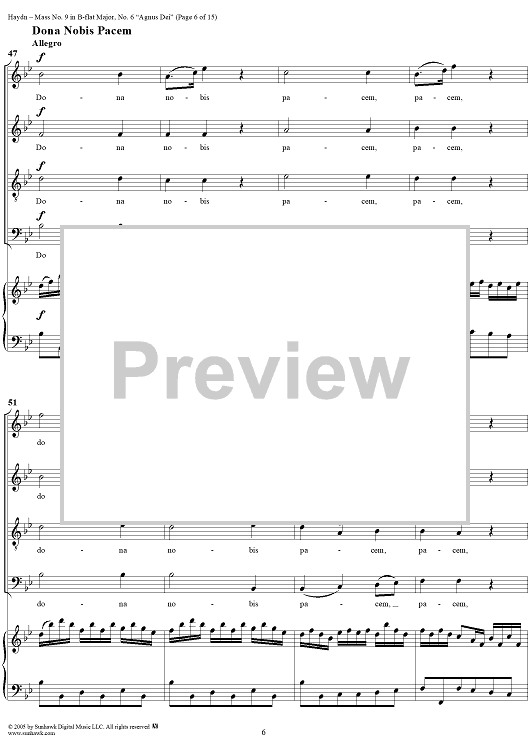 Digital Sheet Music for Mass No. 9 (Sancti Bernardi) in B-flat Major, "Heiligmesse": No. 6. Dona nobis pacem by Franz Joseph Haydn scored for Four-part Mixed Chorus/Piano; id:306862