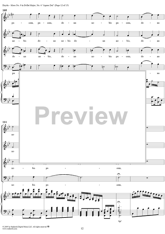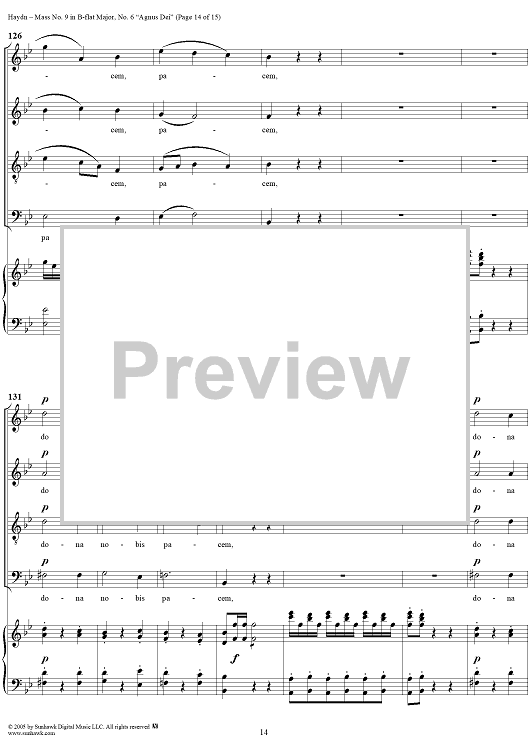"Mass No. 9 (Sancti Bernardi) in B-flat Major, "Heiligmesse": No. 6. Dona nobis pacem" Sheet Music by Franz Joseph Haydn