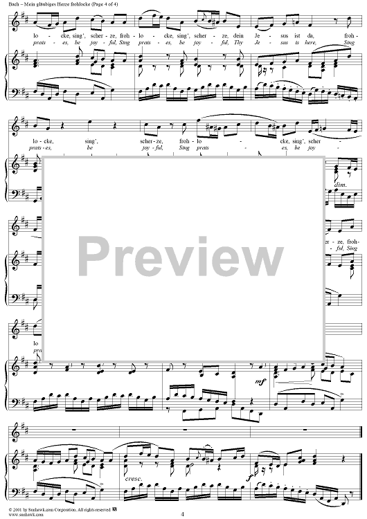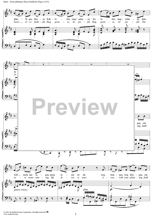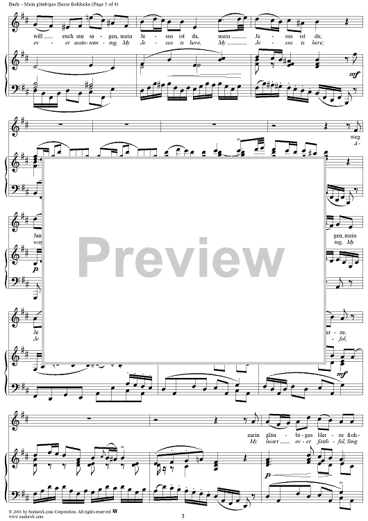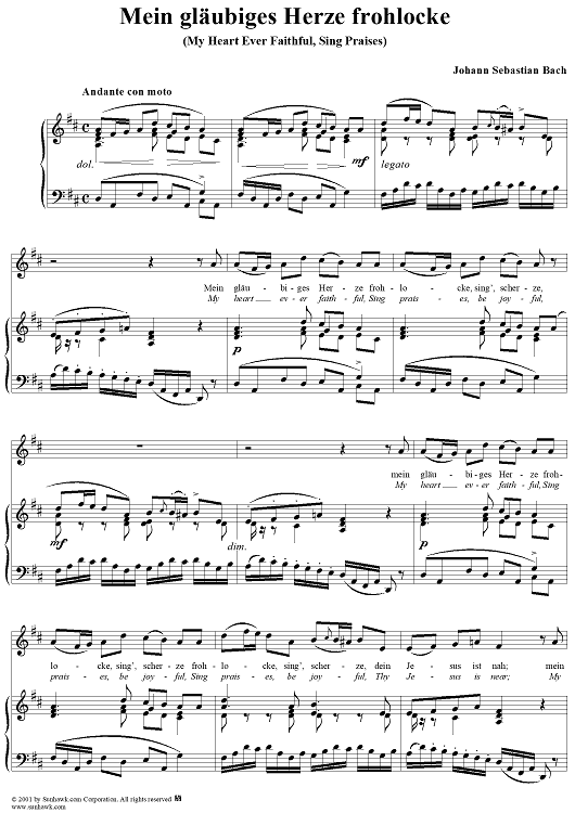 Digital Sheet Music for Mein gläubiges Herze frohlocke by Johann Sebastian Bach scored for Voice/Piano; id:265598