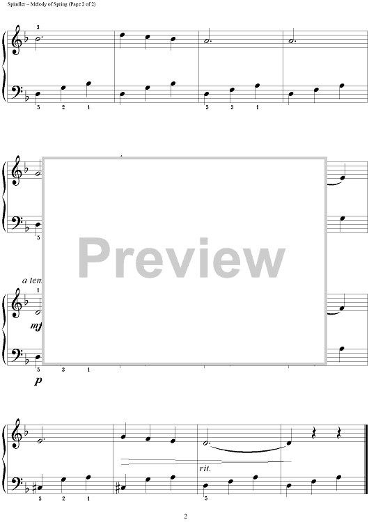 Digital Sheet Music for Melody of Spring by Fritz Spindler scored for Easy Piano; id:295899