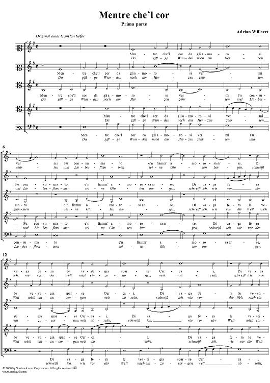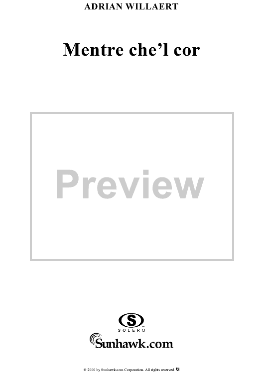 "Mentre che'l cor" Sheet Music by Adrian Willaert