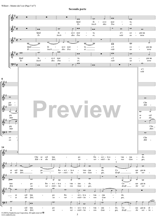 Digital Sheet Music for Mentre che'l cor by Adrian Willaert scored for Five-part Mixed Chorus; id:276811