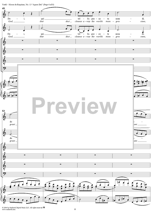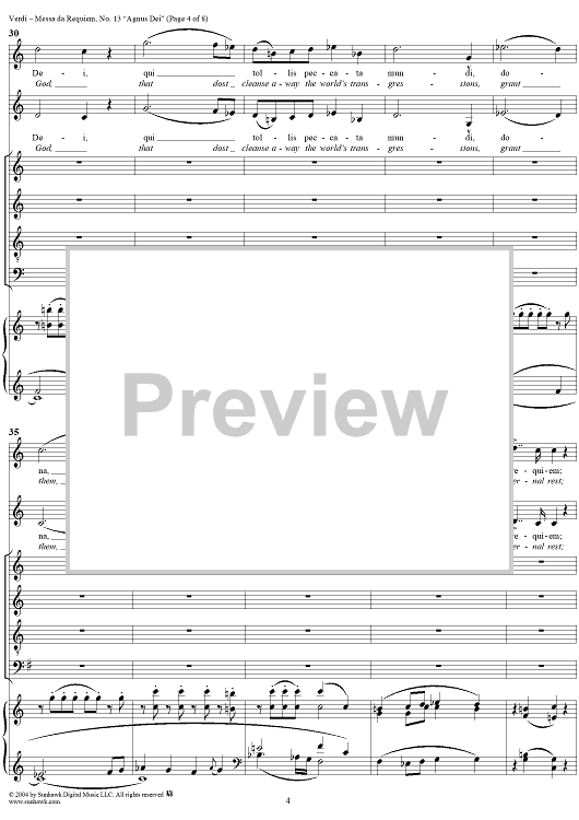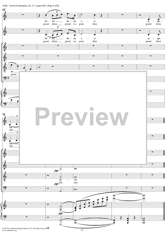 Digital Sheet Music for Messa da Requiem: No. 13. Agnus Dei by Giuseppe Verdi scored for Four-part Mixed Chorus/Piano; id:304169