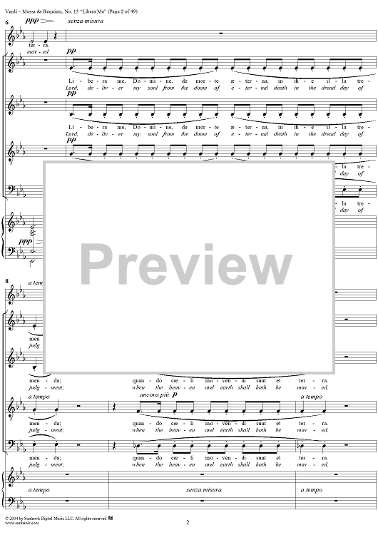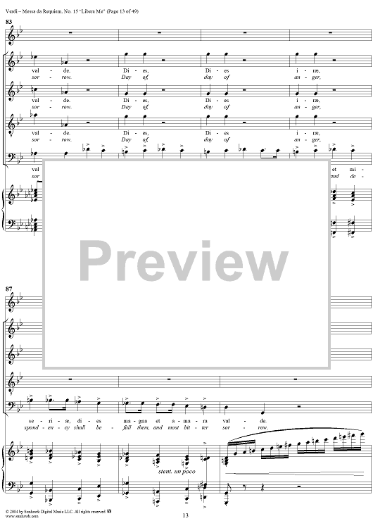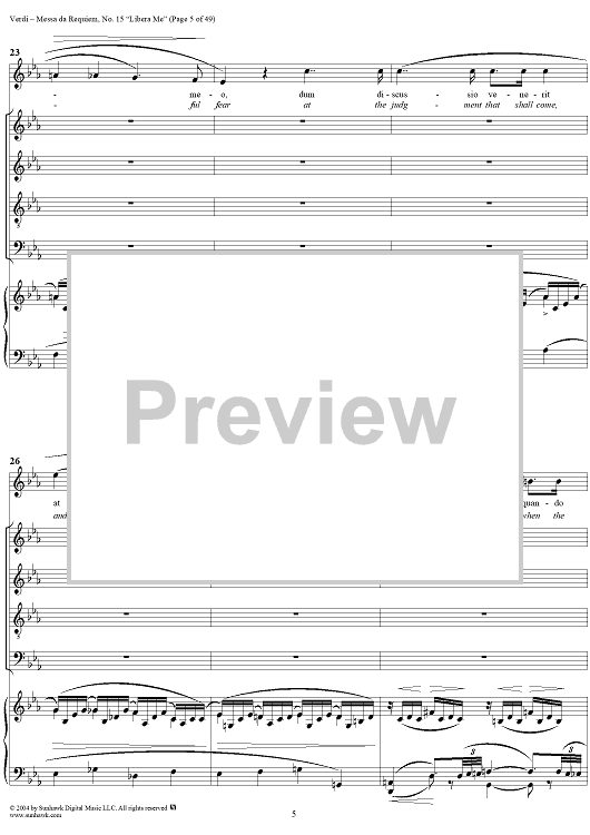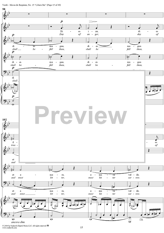 Digital Sheet Music for Messa da Requiem: No. 15. Libera Me by Giuseppe Verdi scored for Four-part Mixed Chorus/Piano; id:304171
