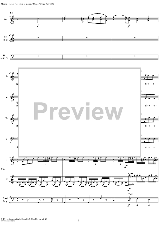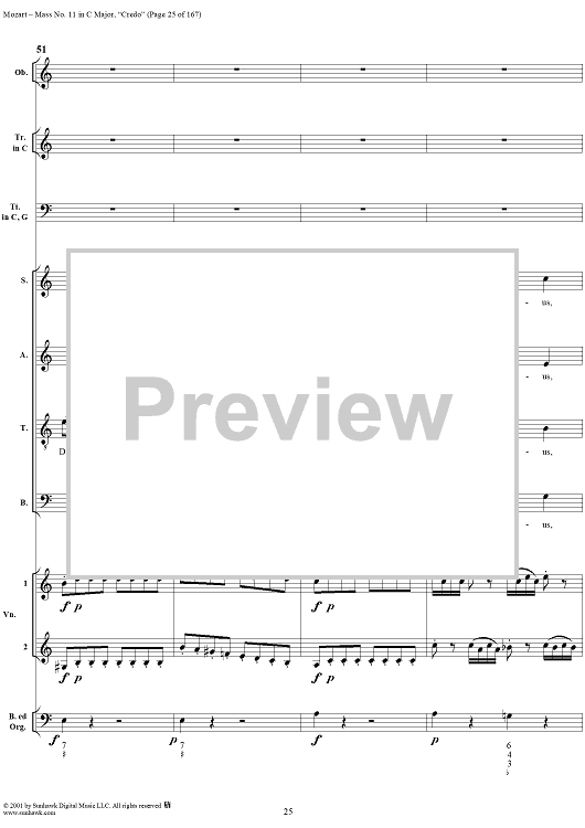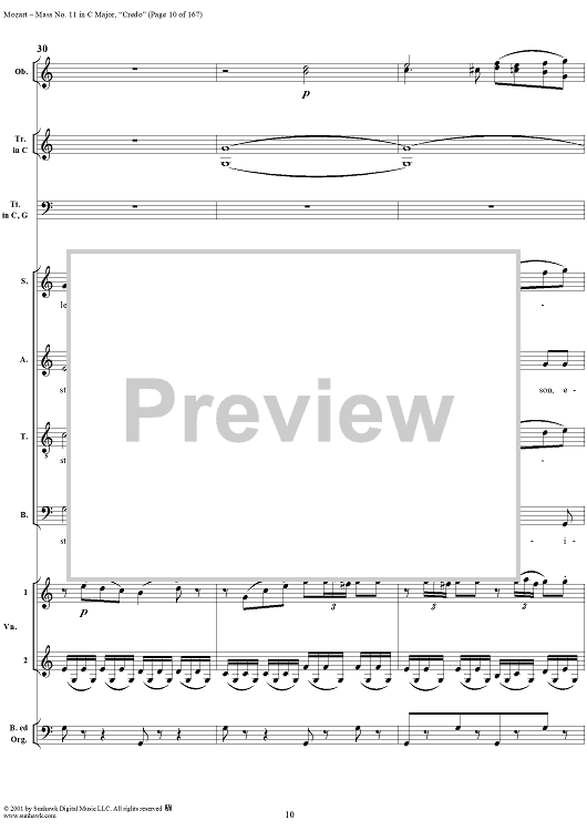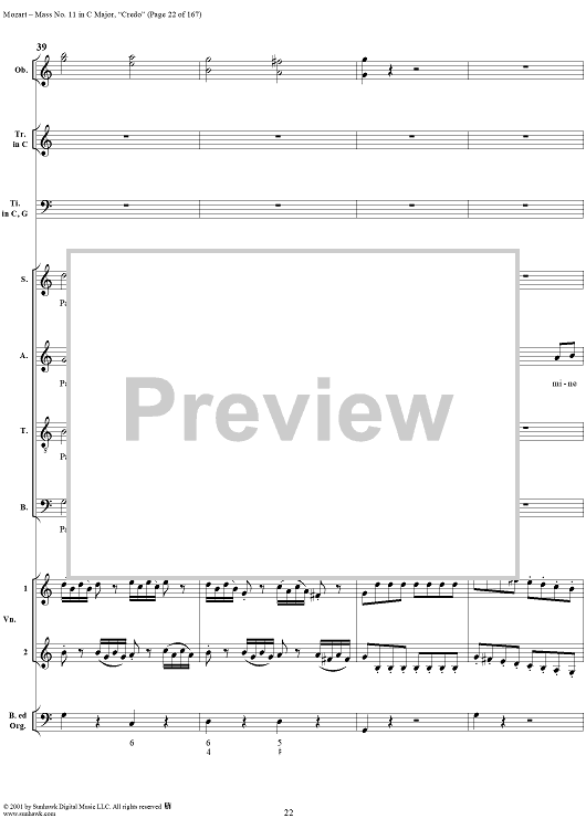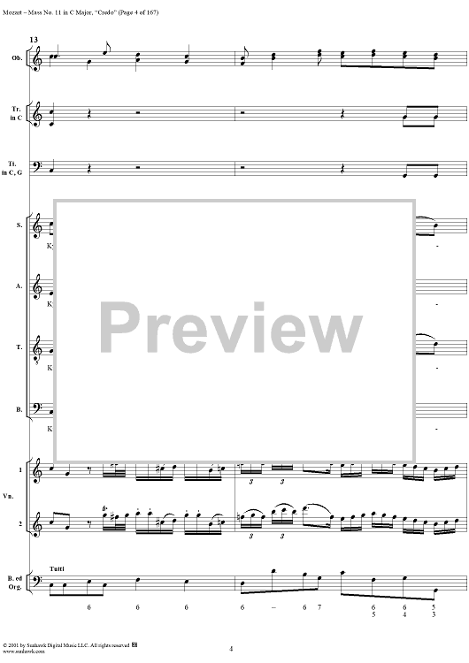 Digital Sheet Music for Messe (Credo-Messe) from Mass No. 11 in C Major, K257 by Wolfgang Amadeus Mozart scored for Four-part Mixed Chorus/Orchestra; id:255429