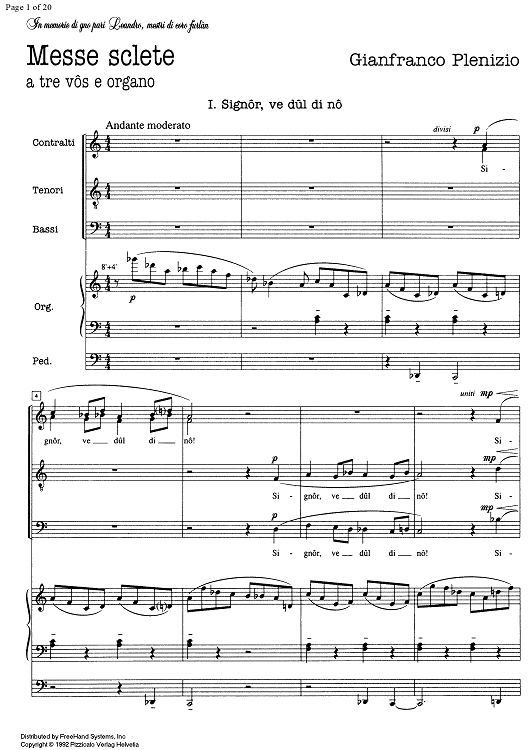 Digital Sheet Music for Messe sclete by , Gianfranco Plenizio scored for Alto/Tenor/Bass/Organ; id:333868