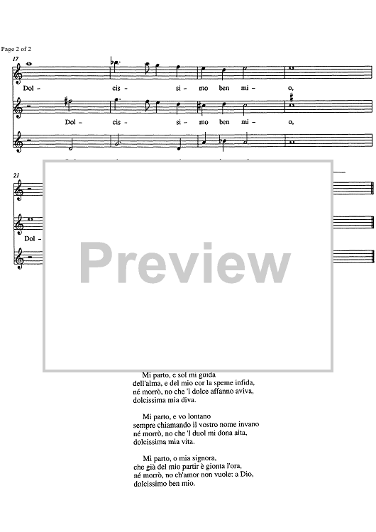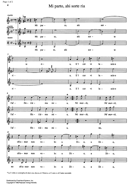 "Mi parto, ahi sorte ria" Sheet Music by Alessandro Orologio