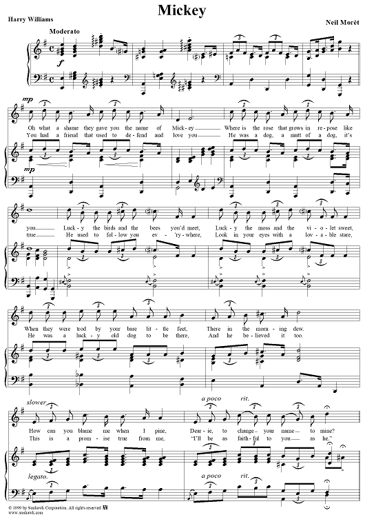 Digital Sheet Music for Mickey by Neil Moret scored for Assorted Instruments; id:262556