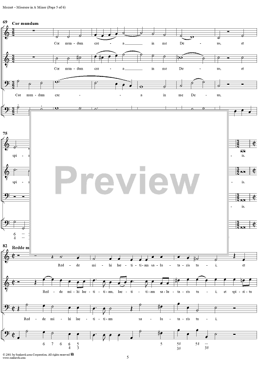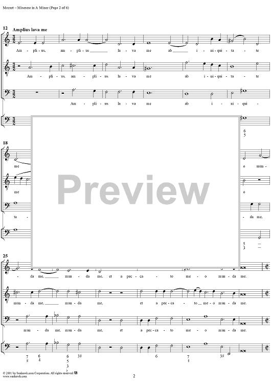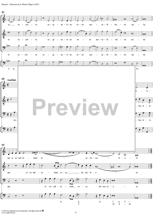Digital Sheet Music for Miserere in A minor - K85 (K73s) by Wolfgang Amadeus Mozart scored for Three-part Mixed Chorus/Continuo; id:253484