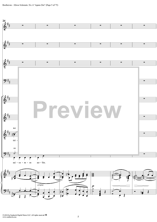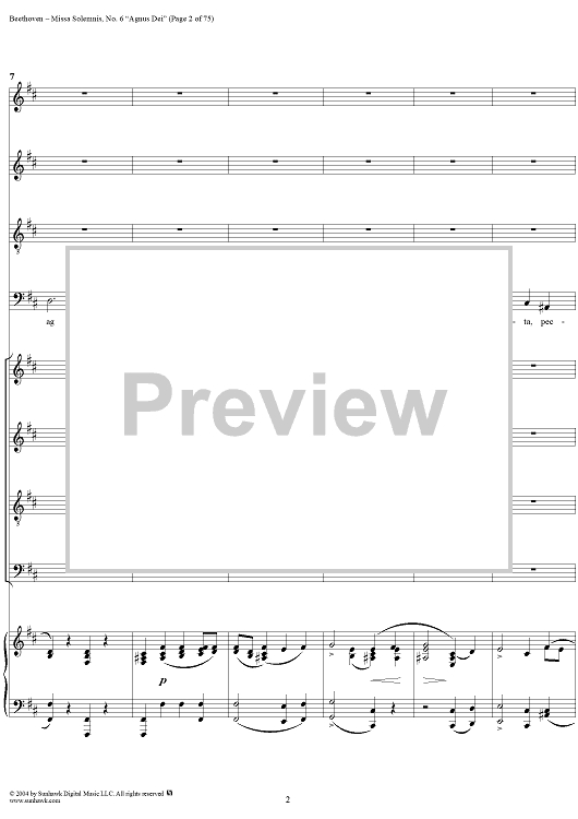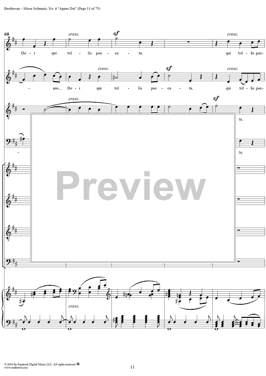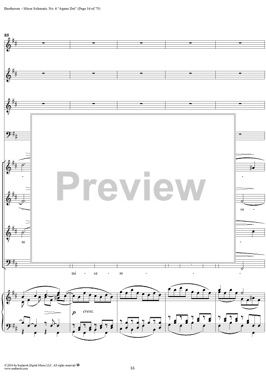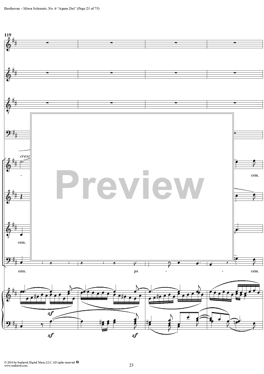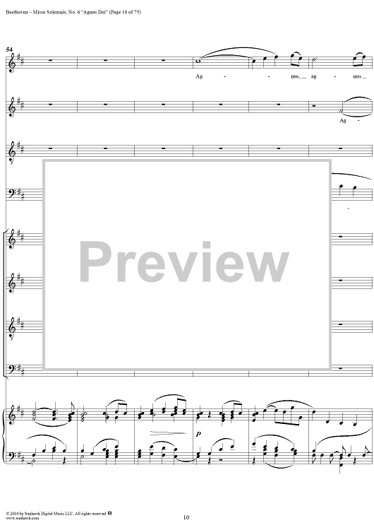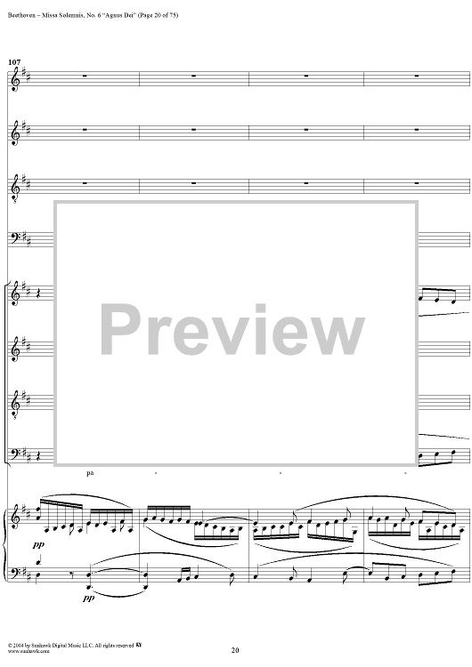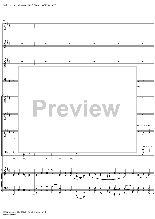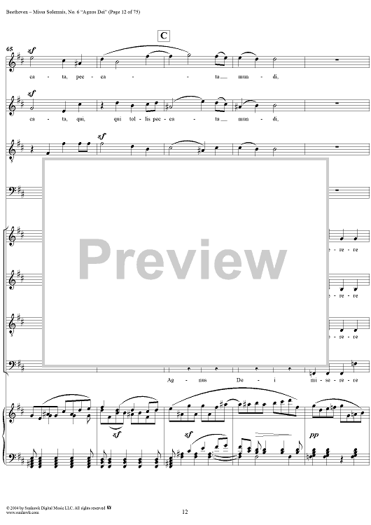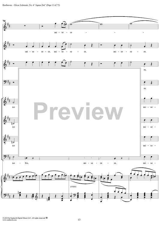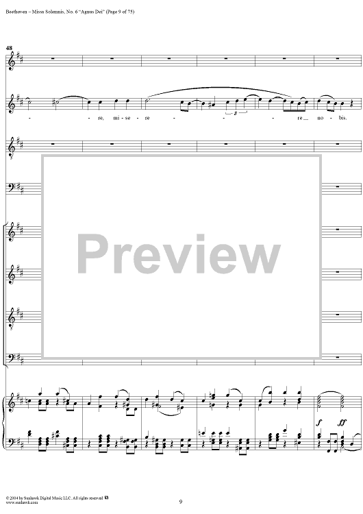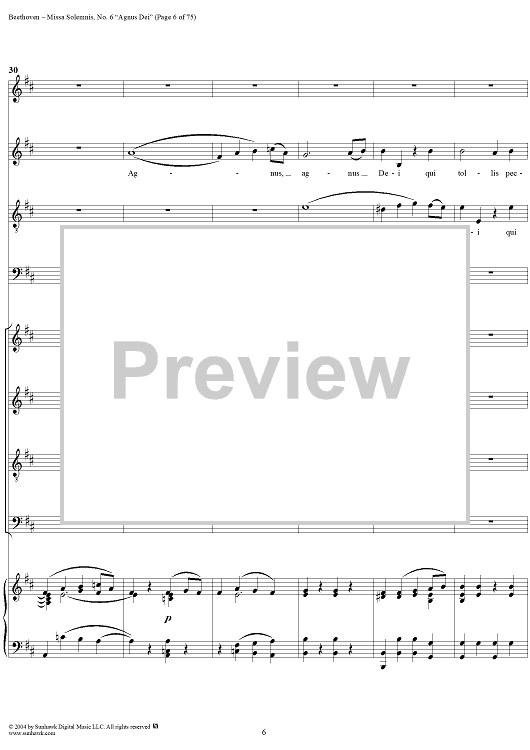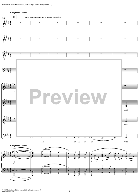 Digital Sheet Music for Missa Solemnis, No. 6: Agnus Dei by Ludwig van Beethoven scored for Soli/SATB/Piano; id:304906
