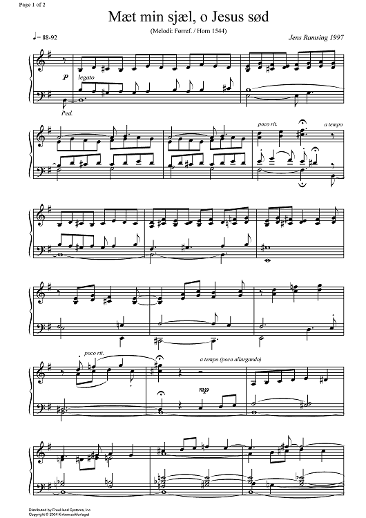 "Mæt min sjæl, o Jesus sød" Sheet Music by Jens Ramsing