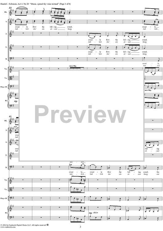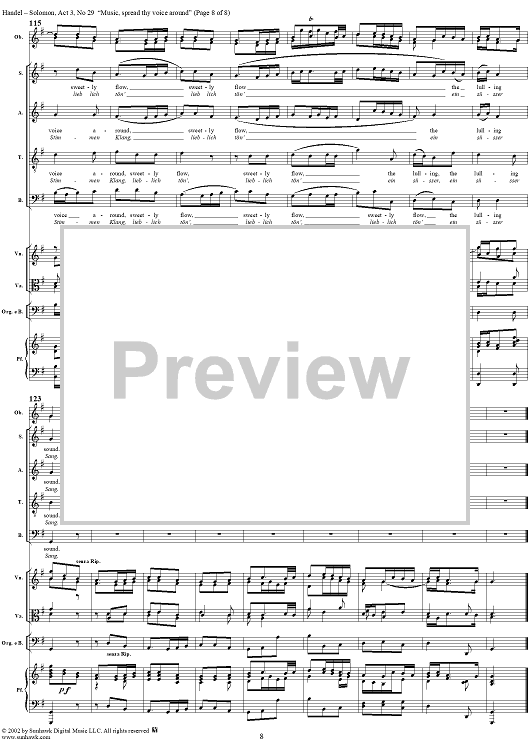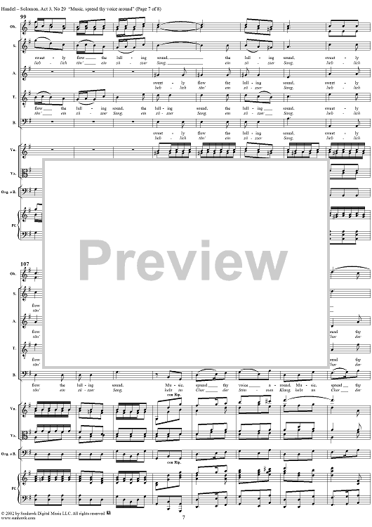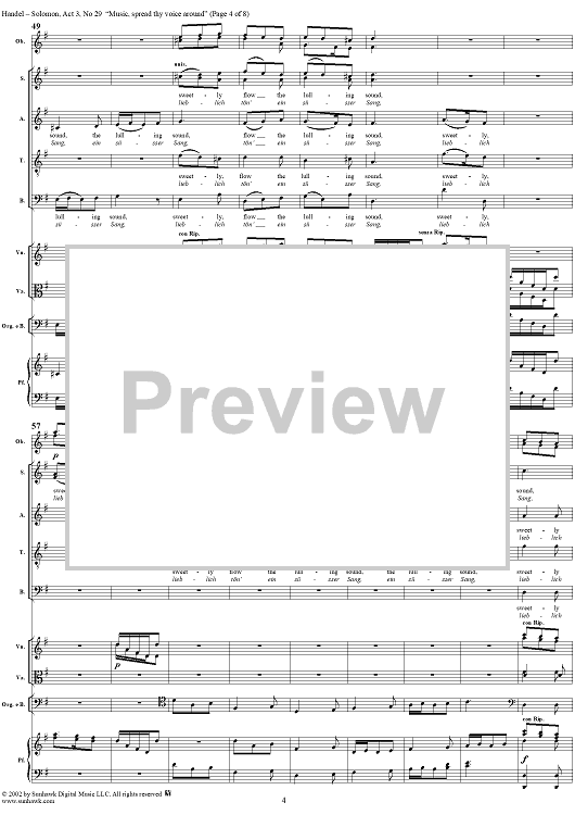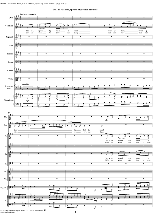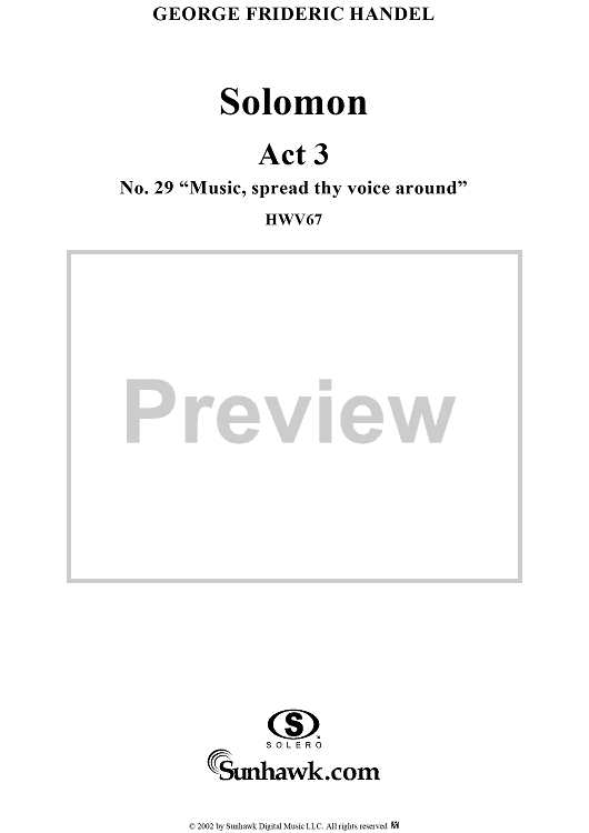 Digital Sheet Music for Music, spread thy voice around, No. 29 from Oratorio "Solomon", Act 3 (HWV67) by George Frideric Handel scored for Soli/SATB/Orchestra; id:290417