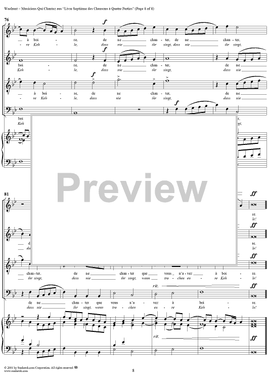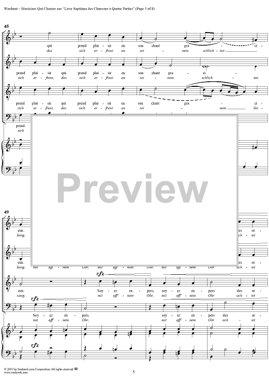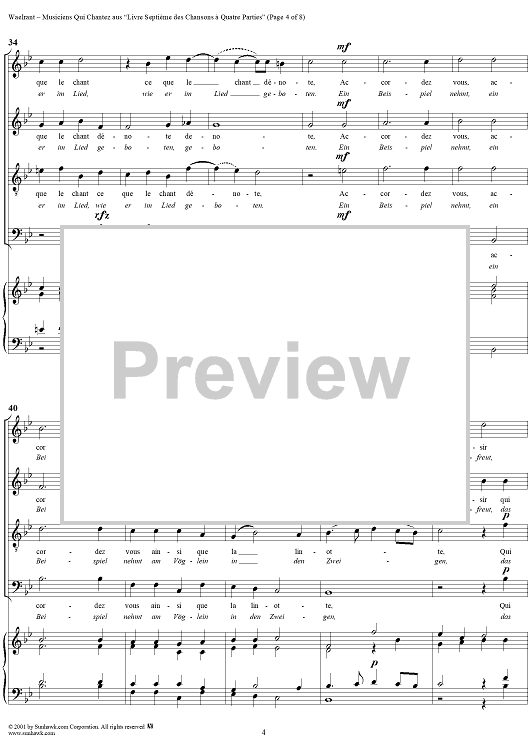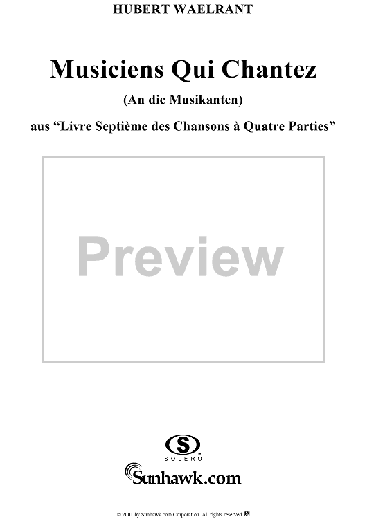 Digital Sheet Music for Musiciens Qui Chantez by Hubert Waelrant scored for Mixed Chorus; id:262673