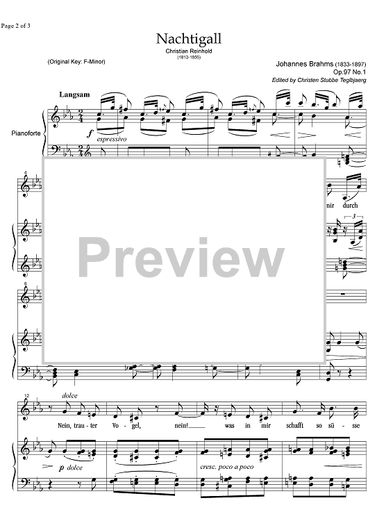 Digital Sheet Music for Nachtigall Op.97 No. 1 by , Johannes Brahms scored for Alto or Bass/Piano; id:343250