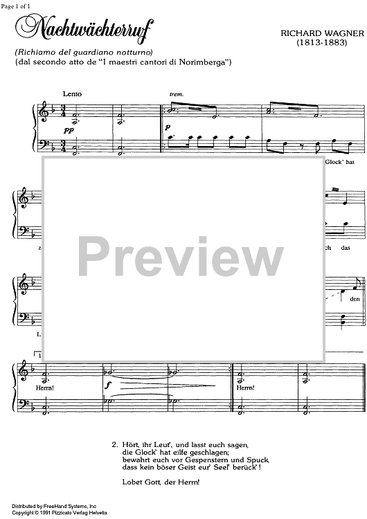 "Nachtwächterruf from Meistersingers from Nürnberg" Sheet Music by Richard Wagner