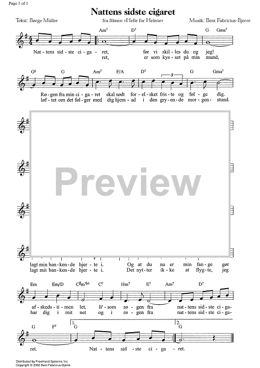 Digital Sheet Music for Nattens sidste cigaret - C Instruments by Bent Fabric scored for Lead Sheet; id:338613