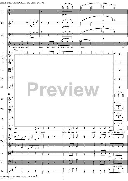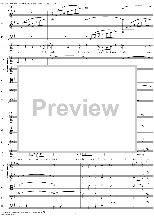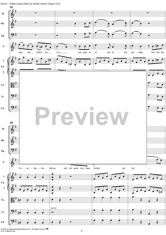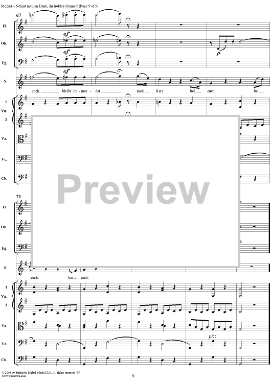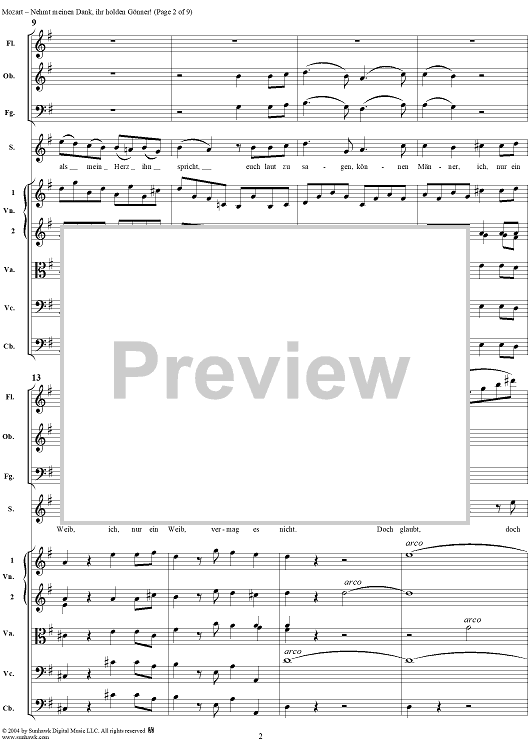 Digital Sheet Music for "Nehmt meinen Dank, ihr holden Gönner!", aria, K383 - Full Score by Wolfgang Amadeus Mozart scored for Soprano/Orchestra; id:292289