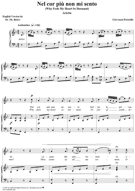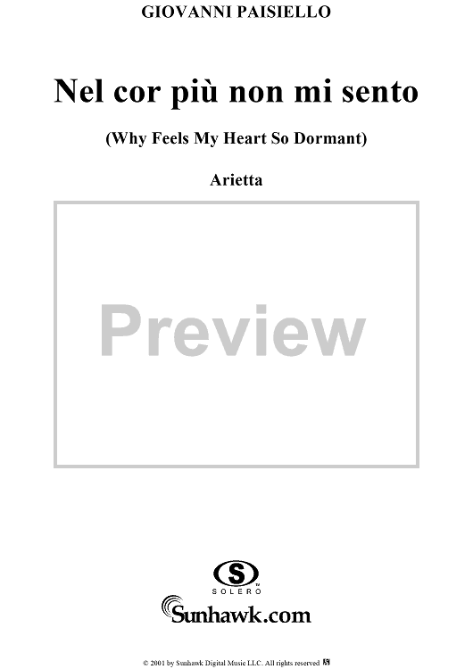"Nel cor più non mi sento" Sheet Music by Giovanni Paisiello