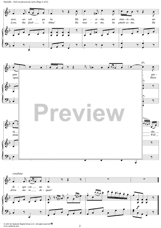 Digital Sheet Music for Nel cor più non mi sento by Giovanni Paisiello scored for Voice/Piano; id:254506
