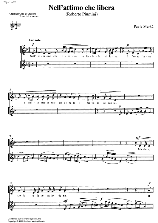 "Nell'attimo che libera" Sheet Music by Pavle Merkù