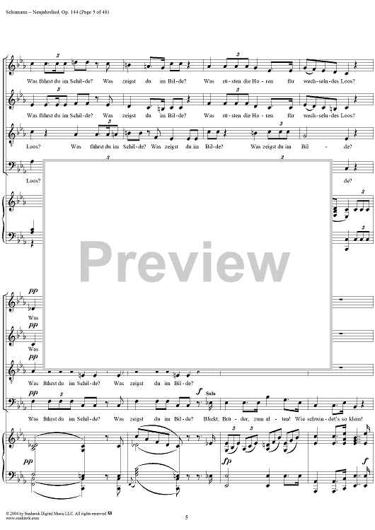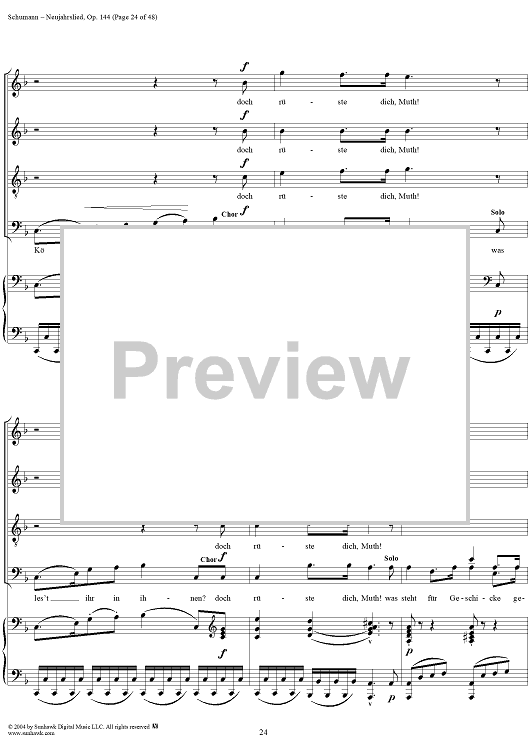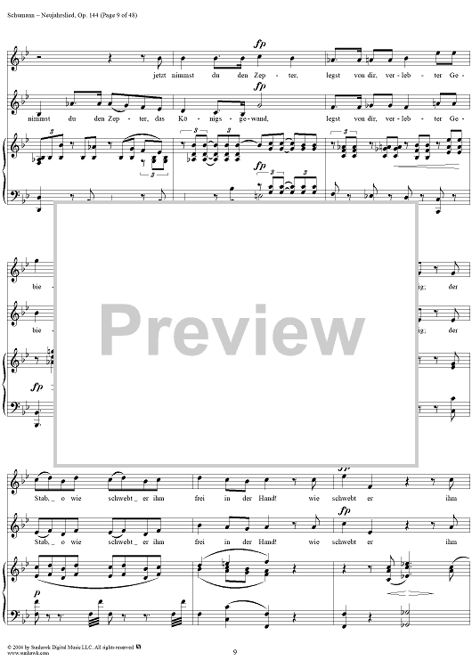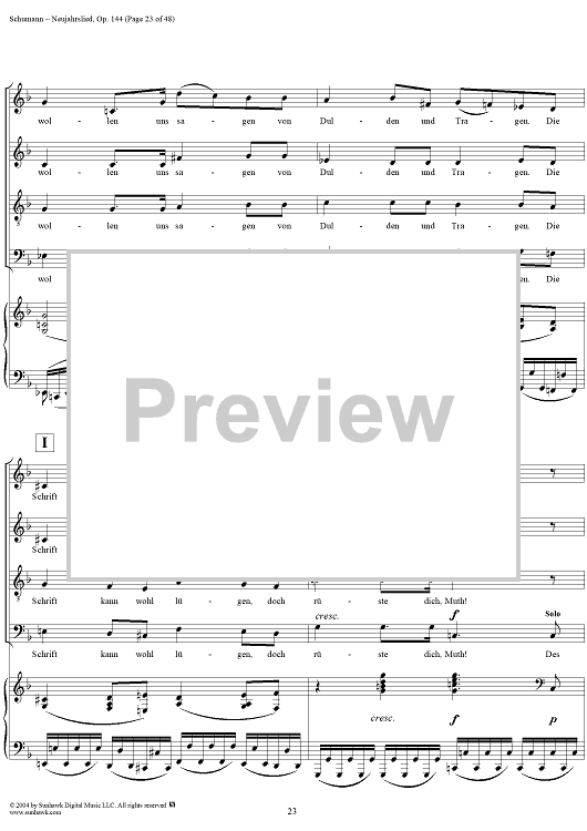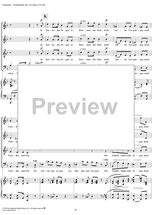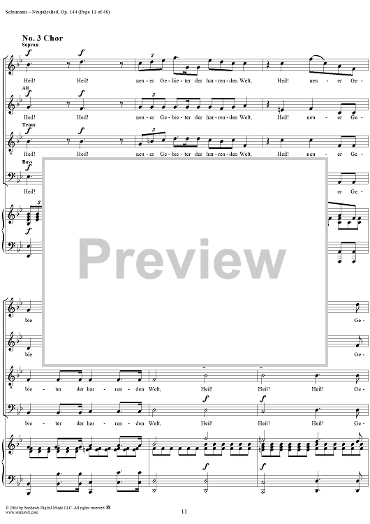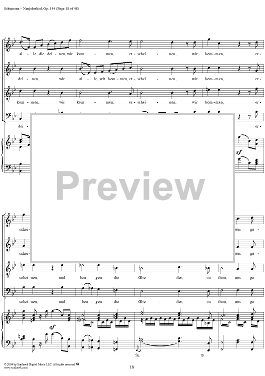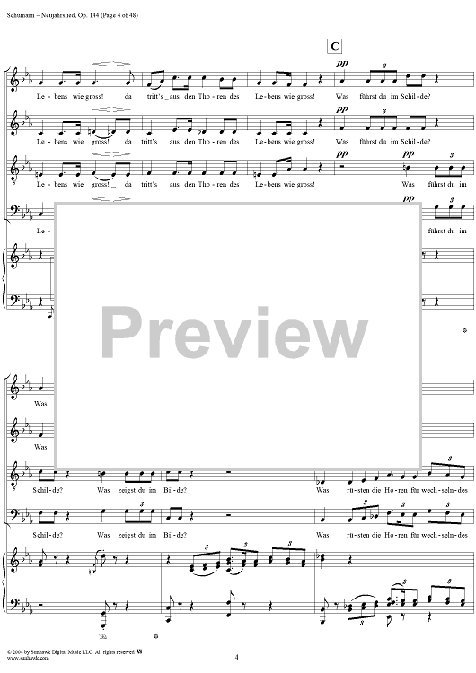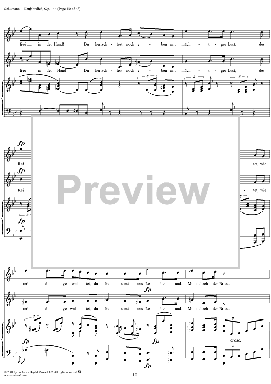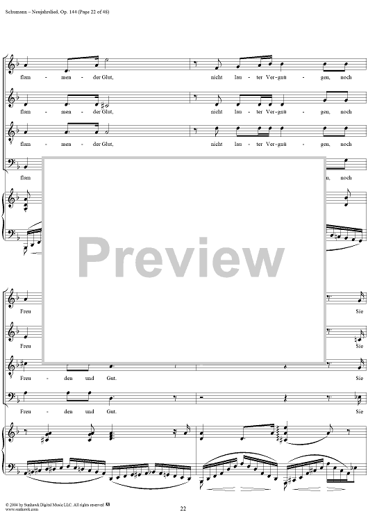 Digital Sheet Music for Neujahrslied, Op. 144 by Robert Schumann scored for Four-part Mixed Chorus/Piano; id:304635
